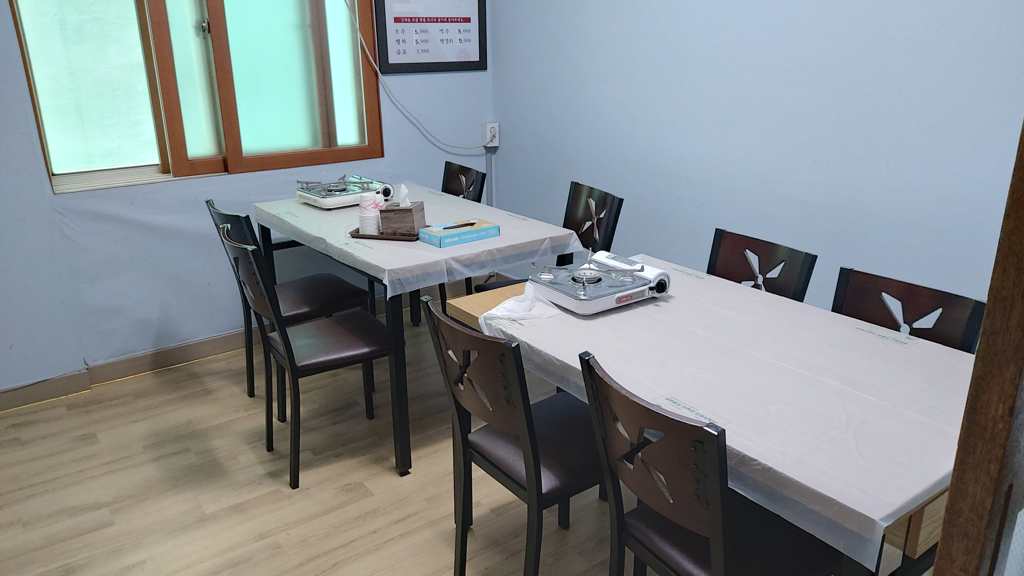 테이블 위에 비닐을 씌워 놓은 집을 싫어하시는 분들이 많은데 노병은 괜찮다고 생각합니다.