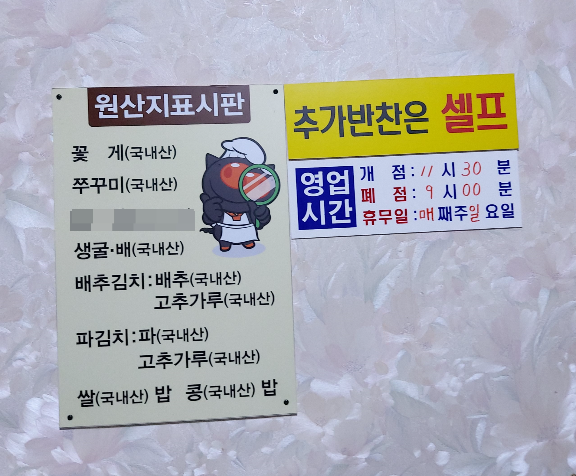 브레이크 타임이 있고(주말 제외) 추가 반찬 리필은 셀프입니다.