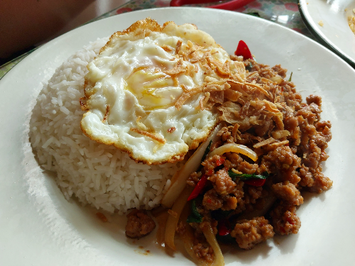 식사 겸 안주감으로 주문했던 팟 카파오 무쌉 ( 다진돼지고기바질덮밥 : 12,000원)