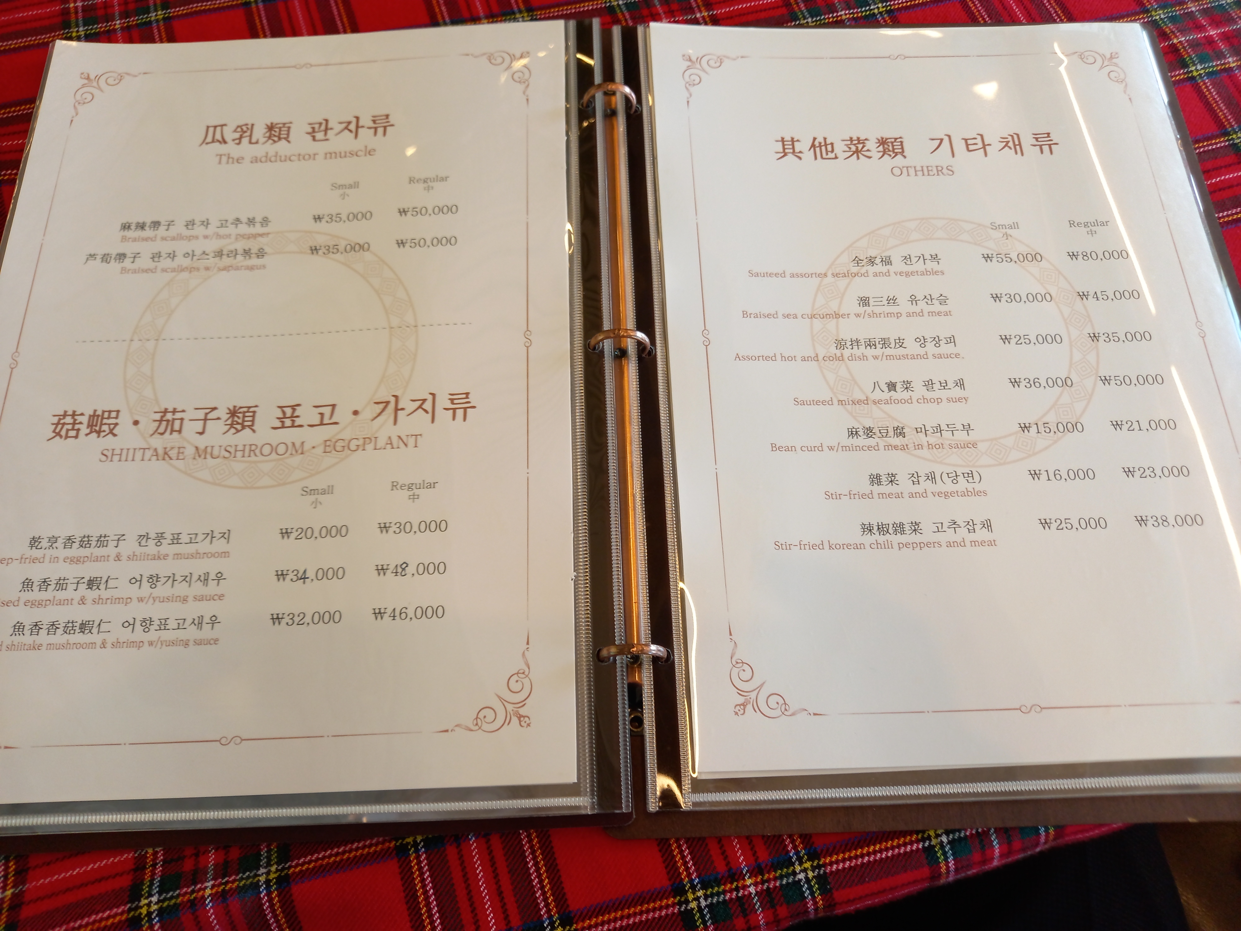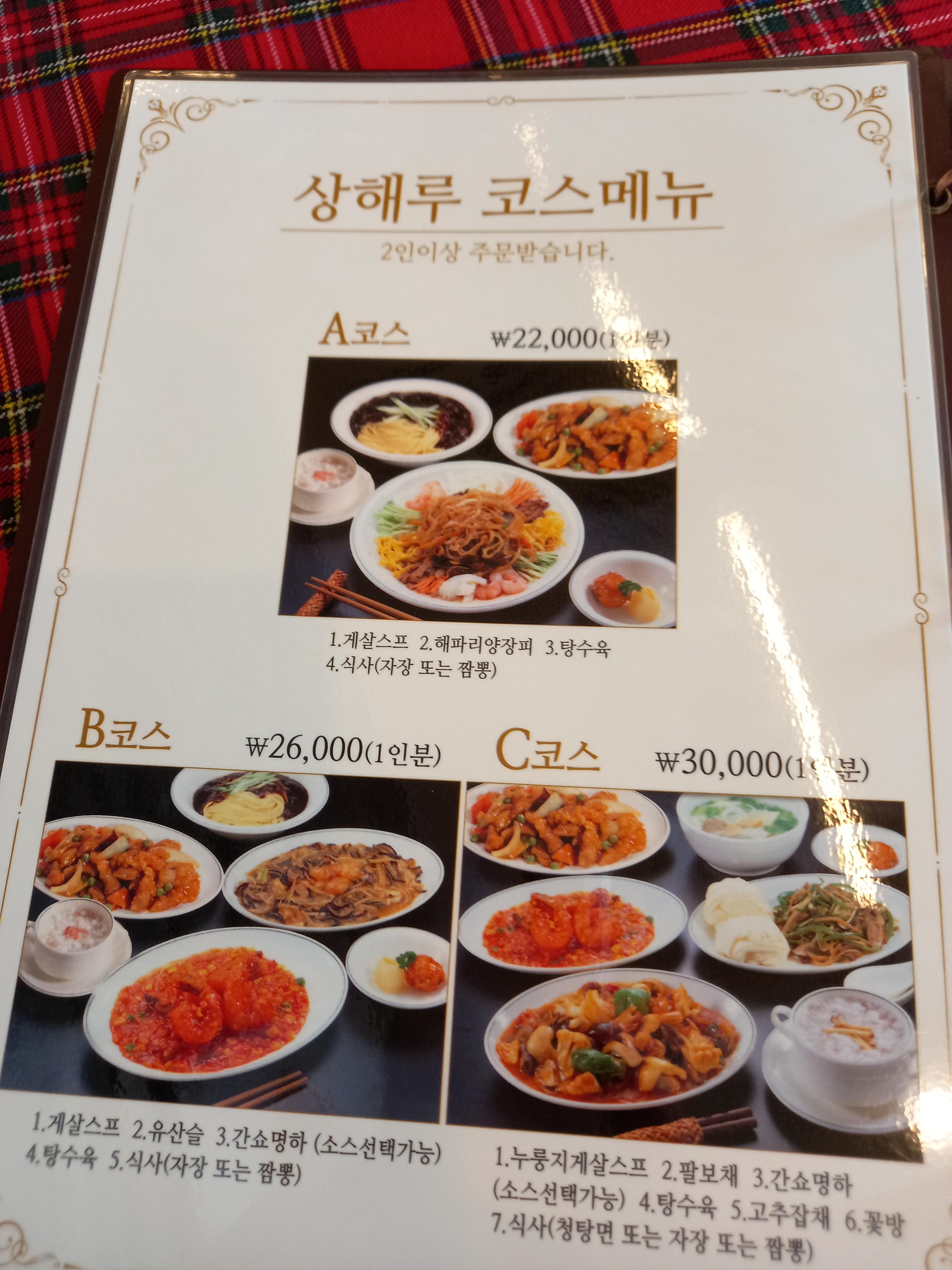김포 상해루의 차림표입니다.
