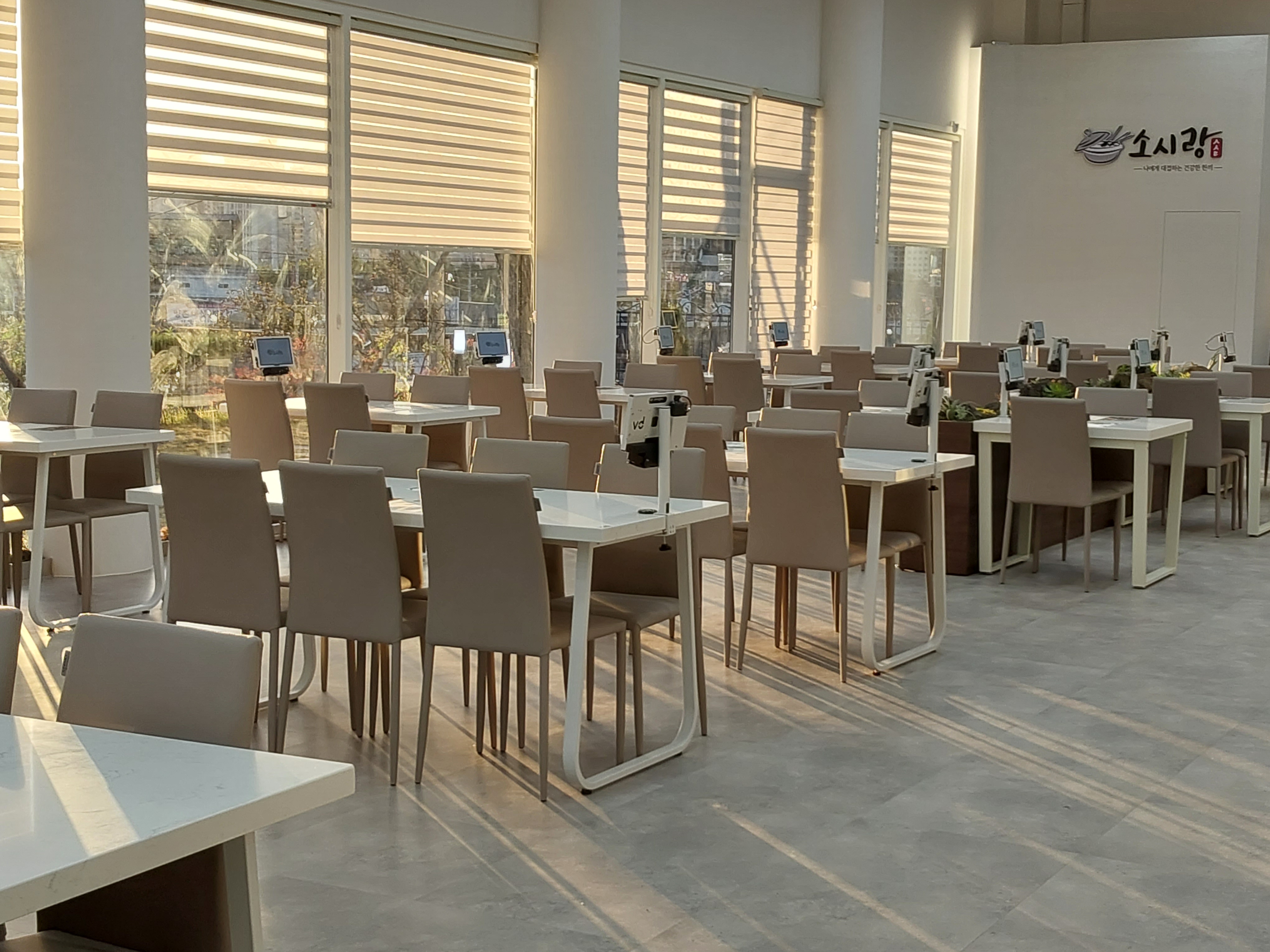 주문을 하면 서빙 로봇이 음식을 가져다줍니다.