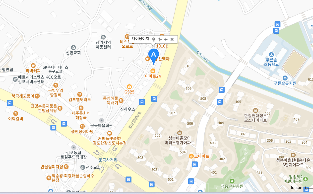 김포 골드라인 장기역 3번 출구에서 양촌읍 방향으로 1 km 정도 떨어진 곳으로