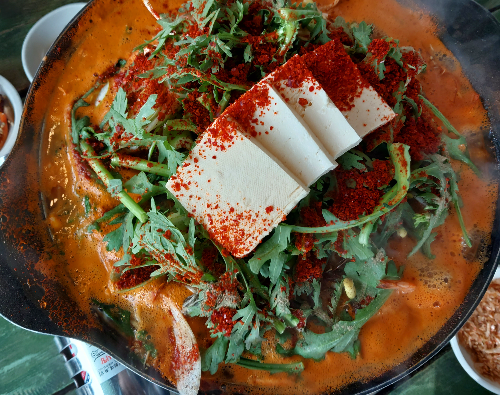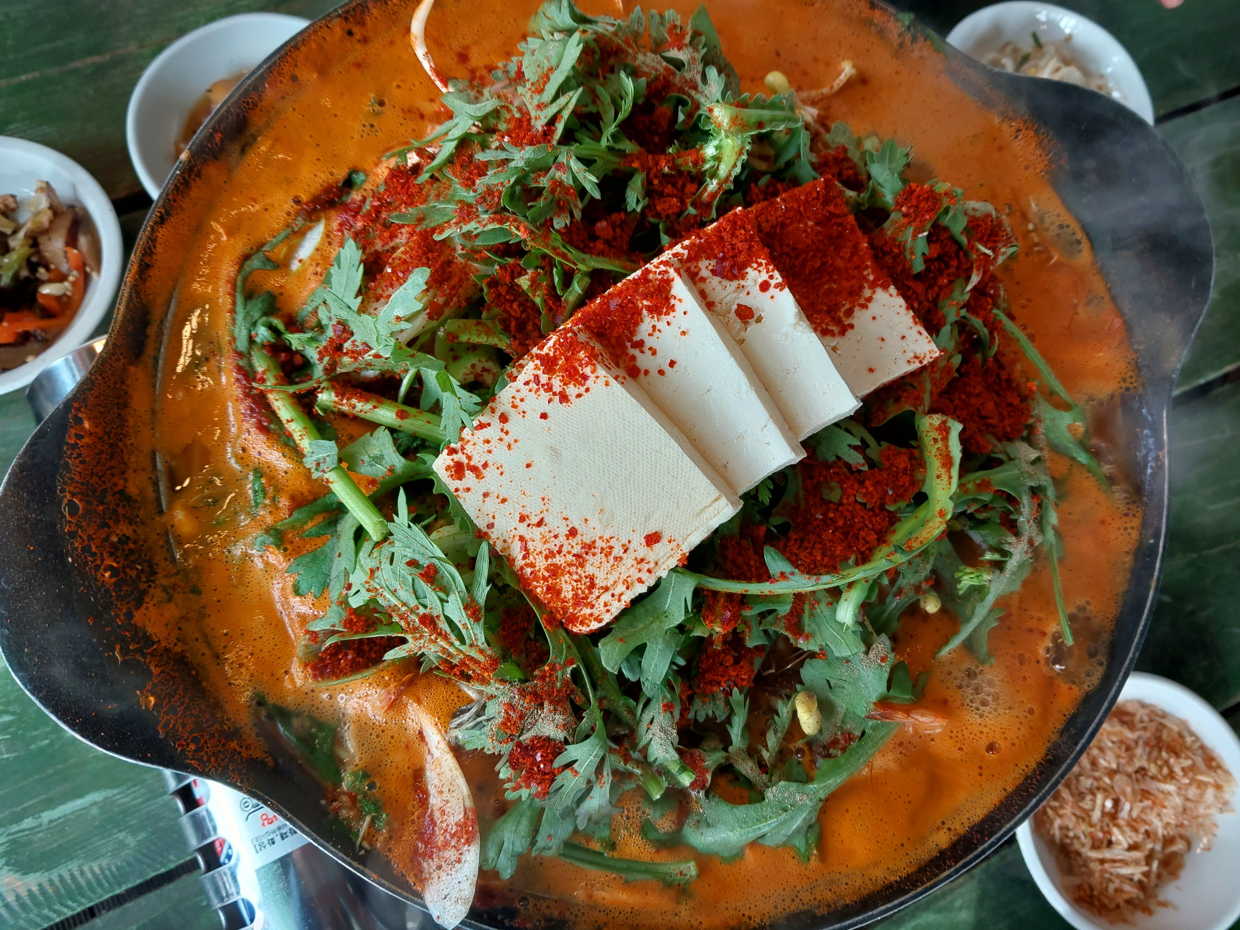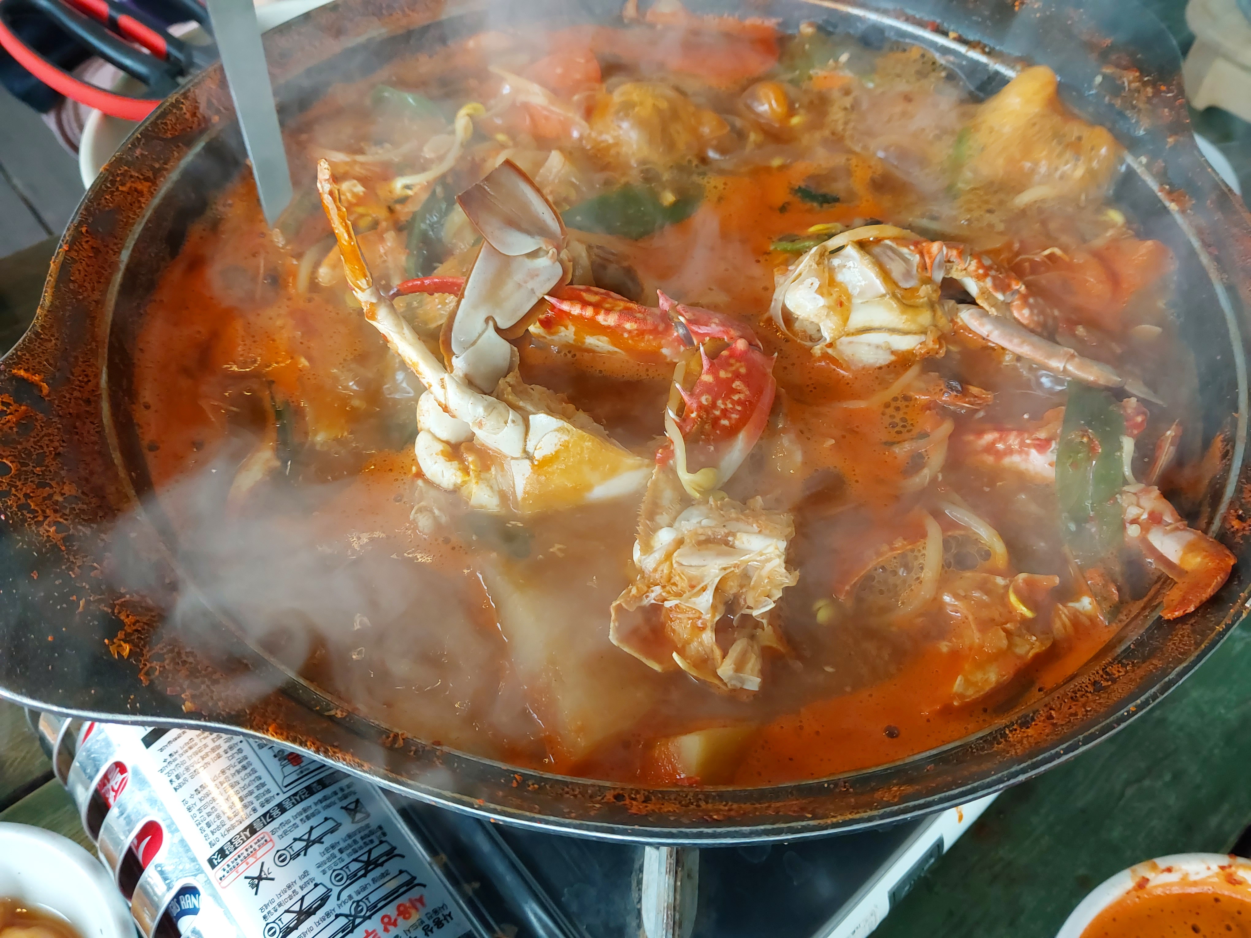꽃게도 꽤 많이 들어 있는 편이고 민물새우가 들어 가 있어 국물이 개운하니 좋습니다.
