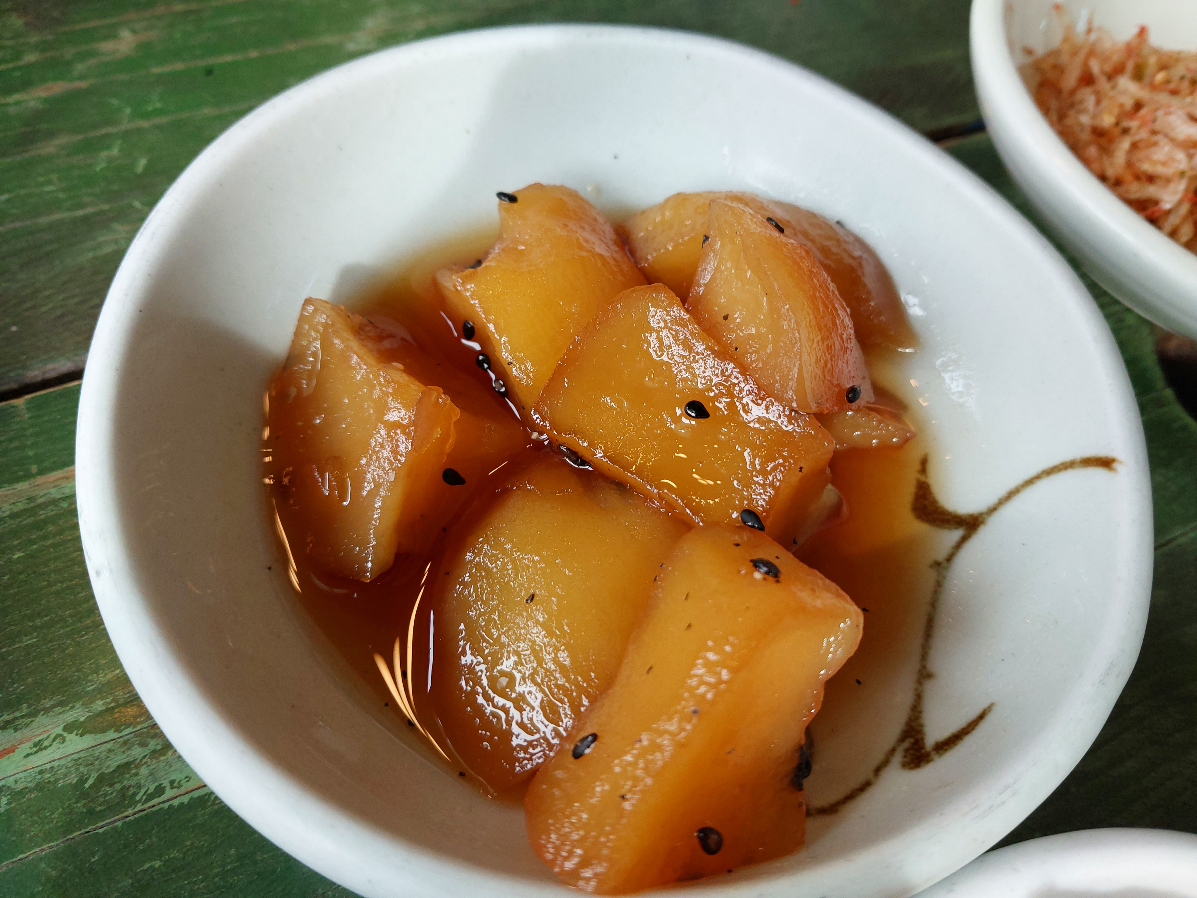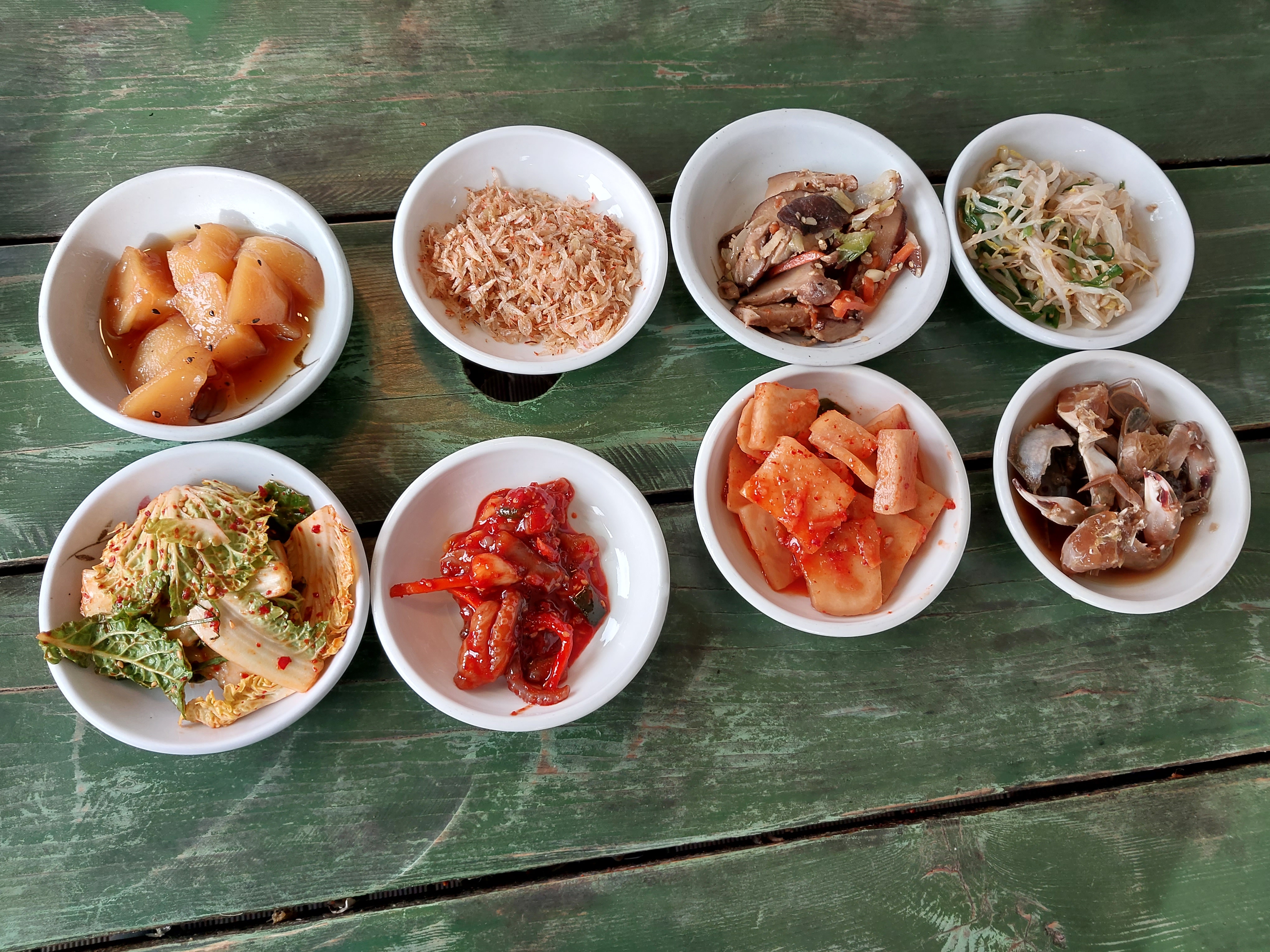 돌게장도 짜지 않고 괜찮았고 오징어젓갈, 민물새우튀김, 감자조림, 순무김치, 각종 나물 등이 나왔습니다.
