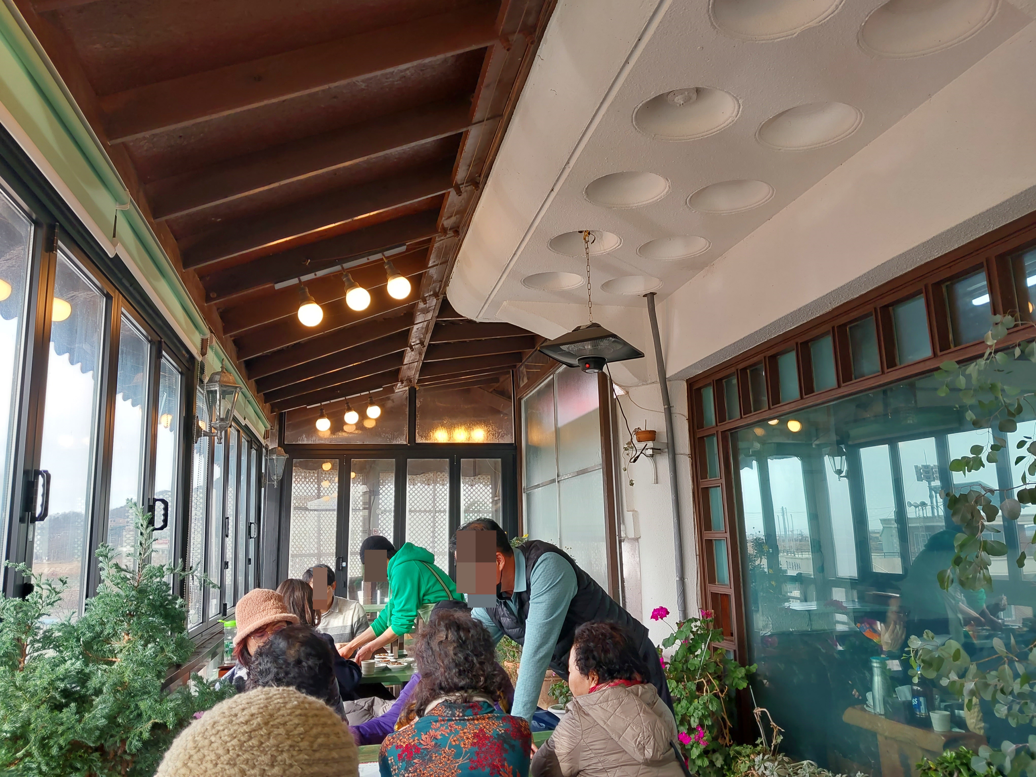 날씨도 푸근한 편이었지만 난방 시설도 잘 되어 있어 테라스가 실외처럼 보이지만 큰 문제가 없습니다.