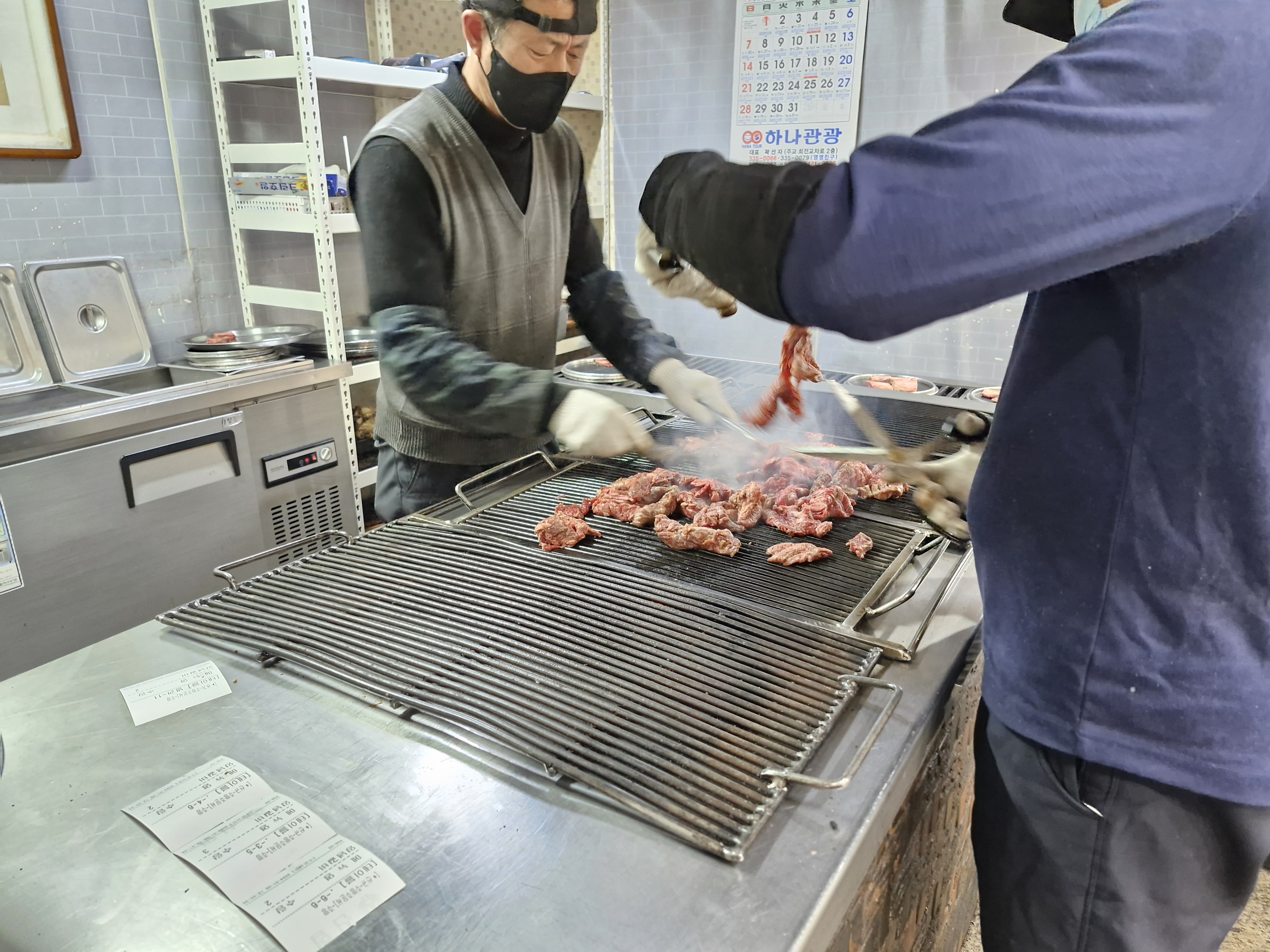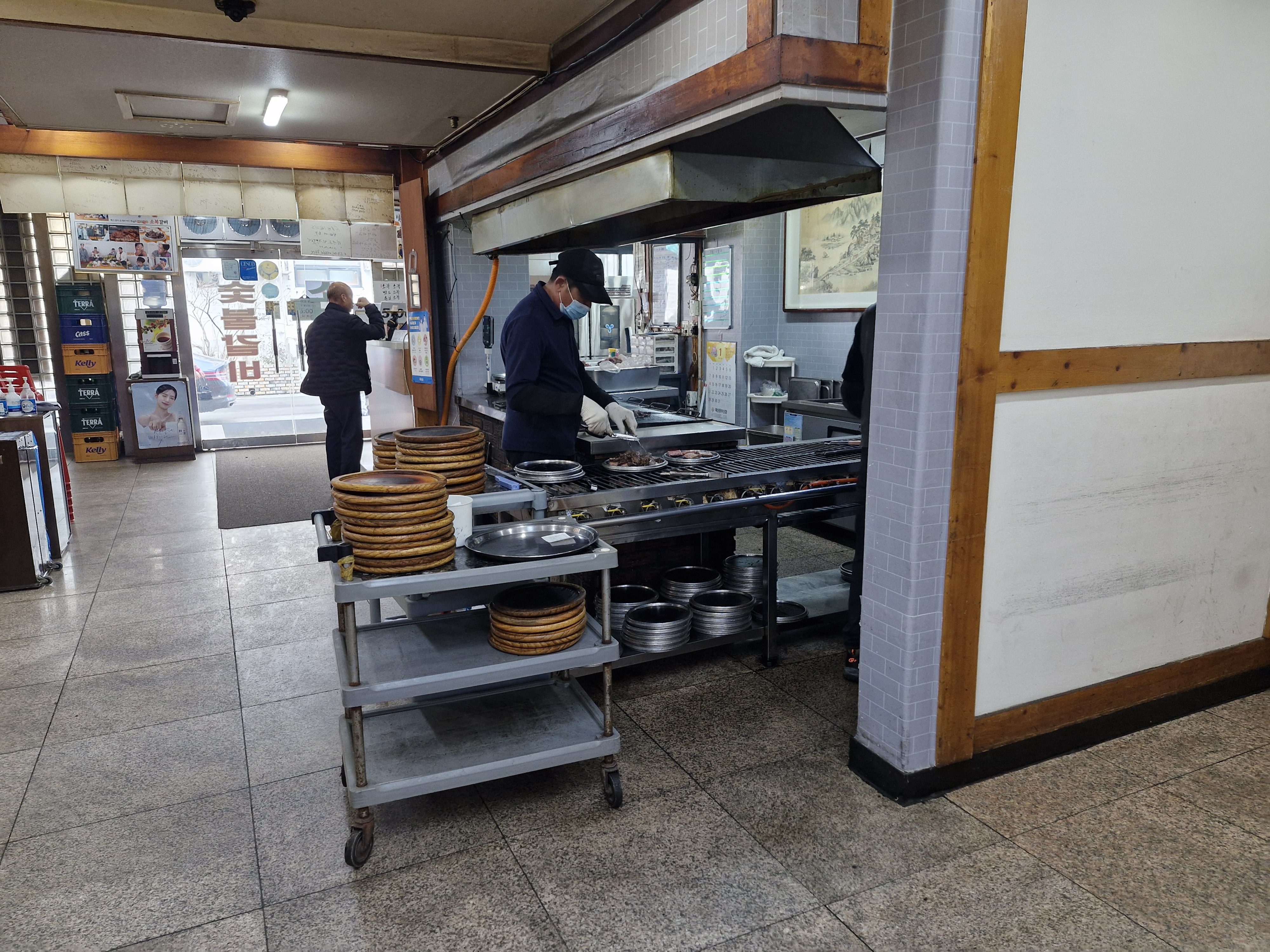 정문으로 들어오면 카운터 옆에서 바로 갈비를 숯불에 굽고 있는 모습이 보입니다.