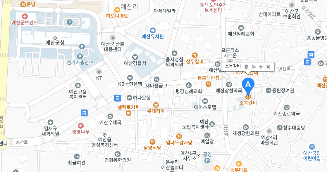 예산 소복갈비는 예산군청과 예산경찰서 그리고 백종원 시장으로 유명해진 예산상설시장 인근에 있습니다.