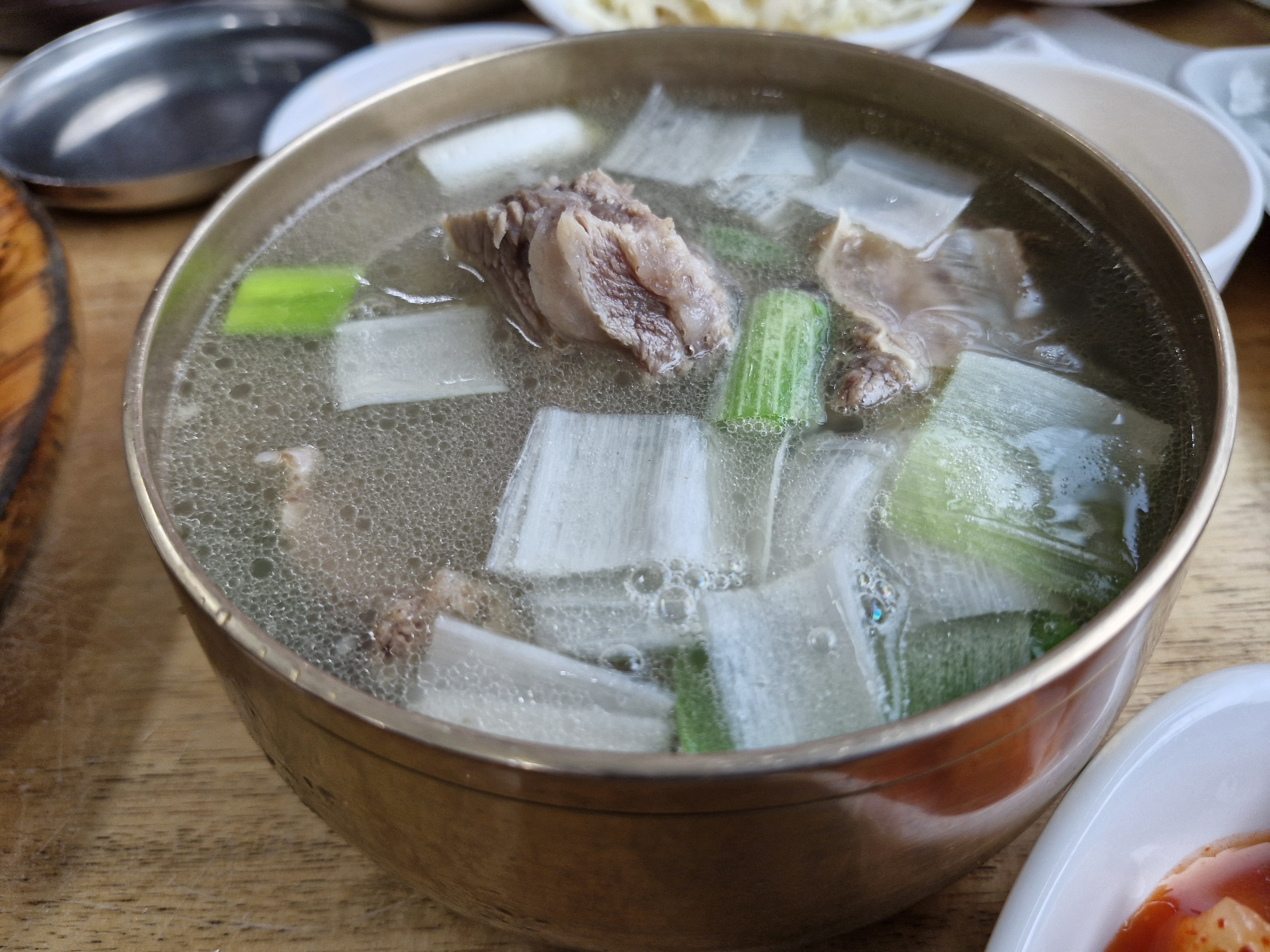 1인당 한 그릇씩 설렁탕이나 갈비탕 국물을 조금씩 가져다줘서 밥을 먹기에 좋습니다.