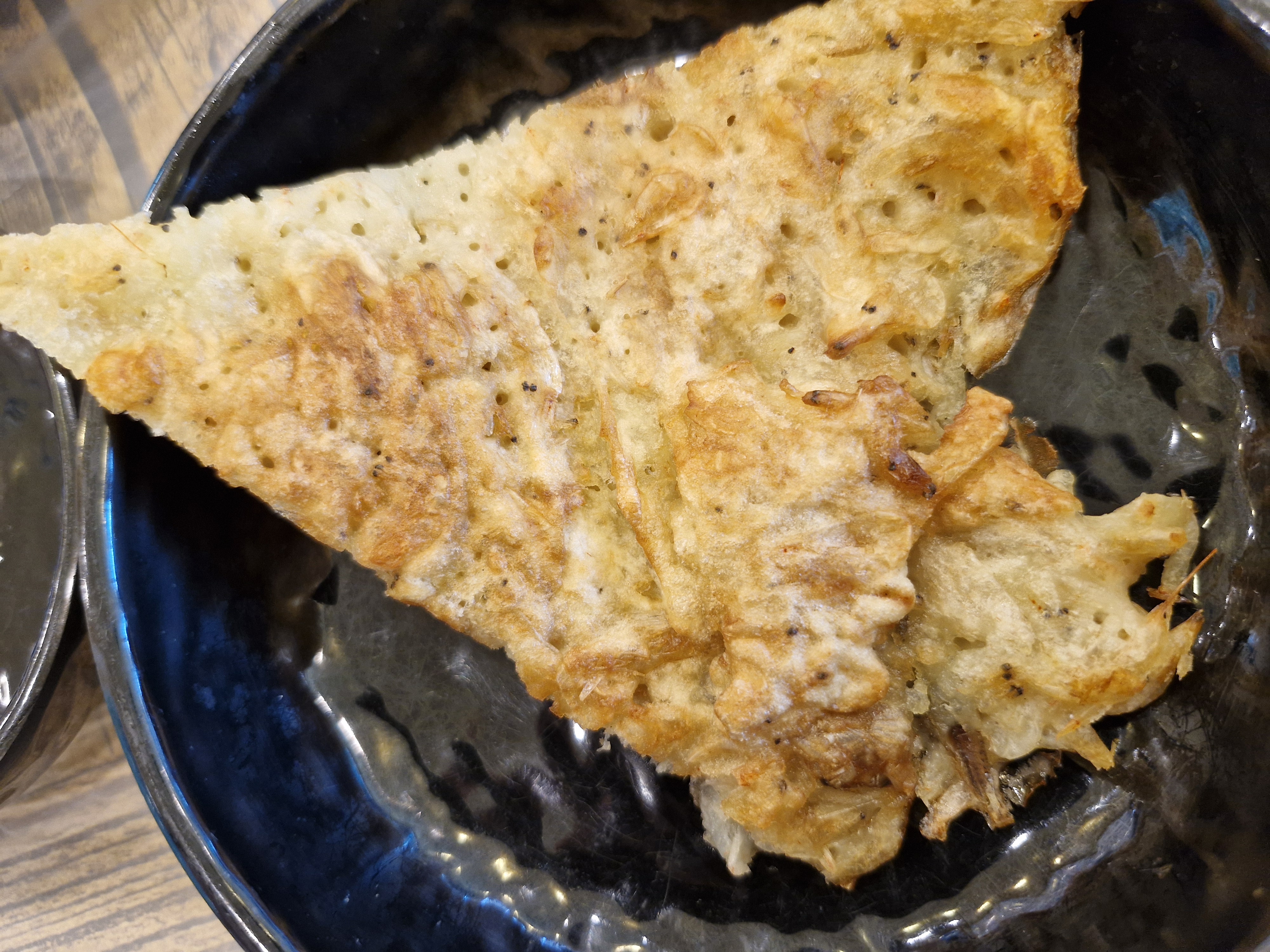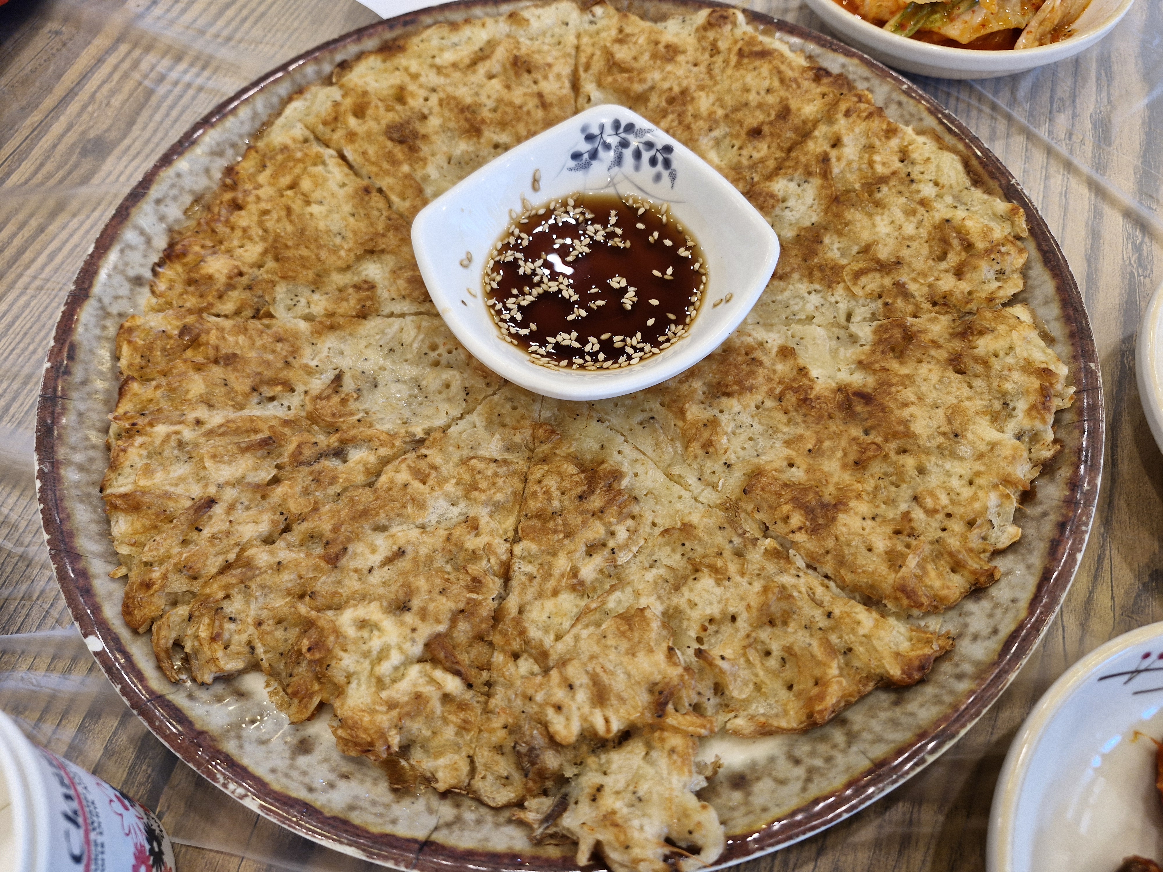 민물새우를 넉넉히 넣어 부쳐 온 전으로 특별하지는 않지만 고소하니 괜찮습니다.