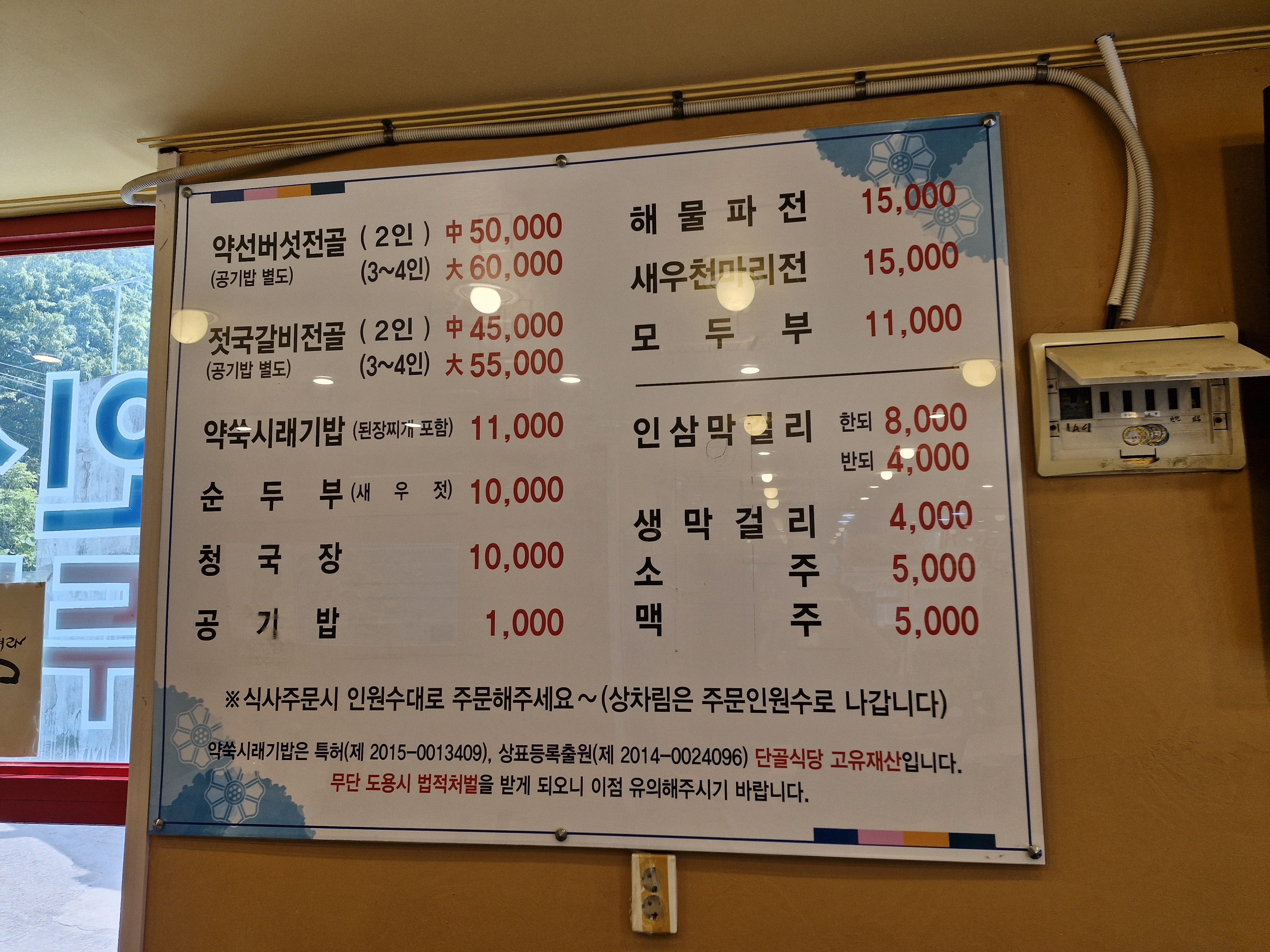 먼저 와서 약선버섯전골을 먹을 때 가게를 가득 메웠던 손님들 모두가 젓국갈비를 먹더군요.