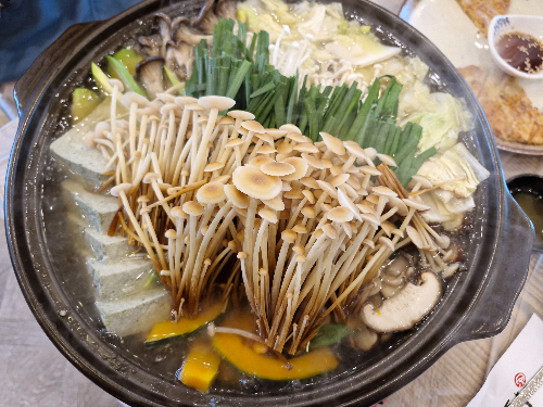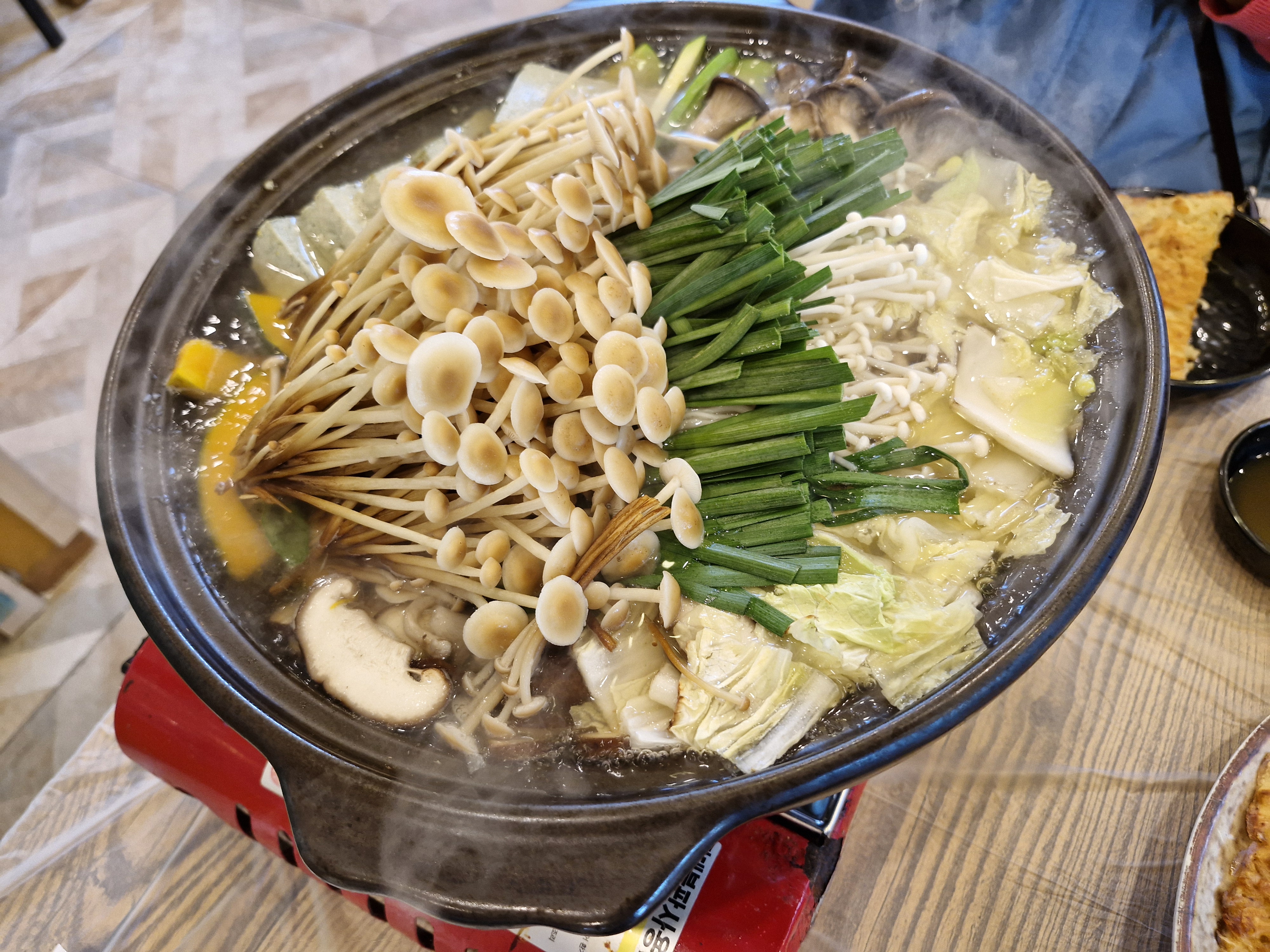 각종 버섯들과 채소, 애호박, 두부 등 좋은 재료들이 들어가 있으니 맛이 없으면 안 될 조합이지요.