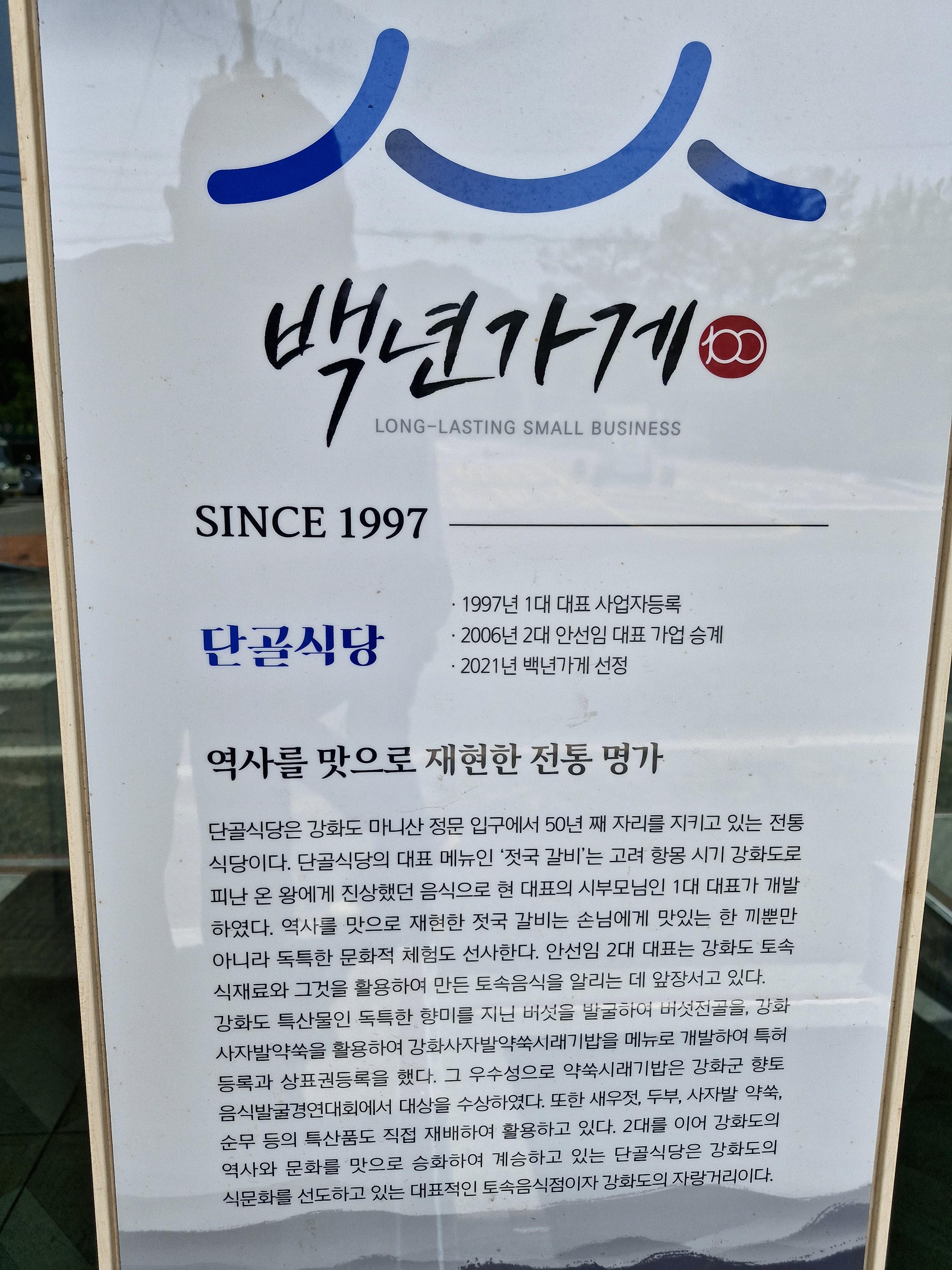 1997년에 문을 연 집으로 중소기업벤처부 선정 100년 가게에 등록이 되었고