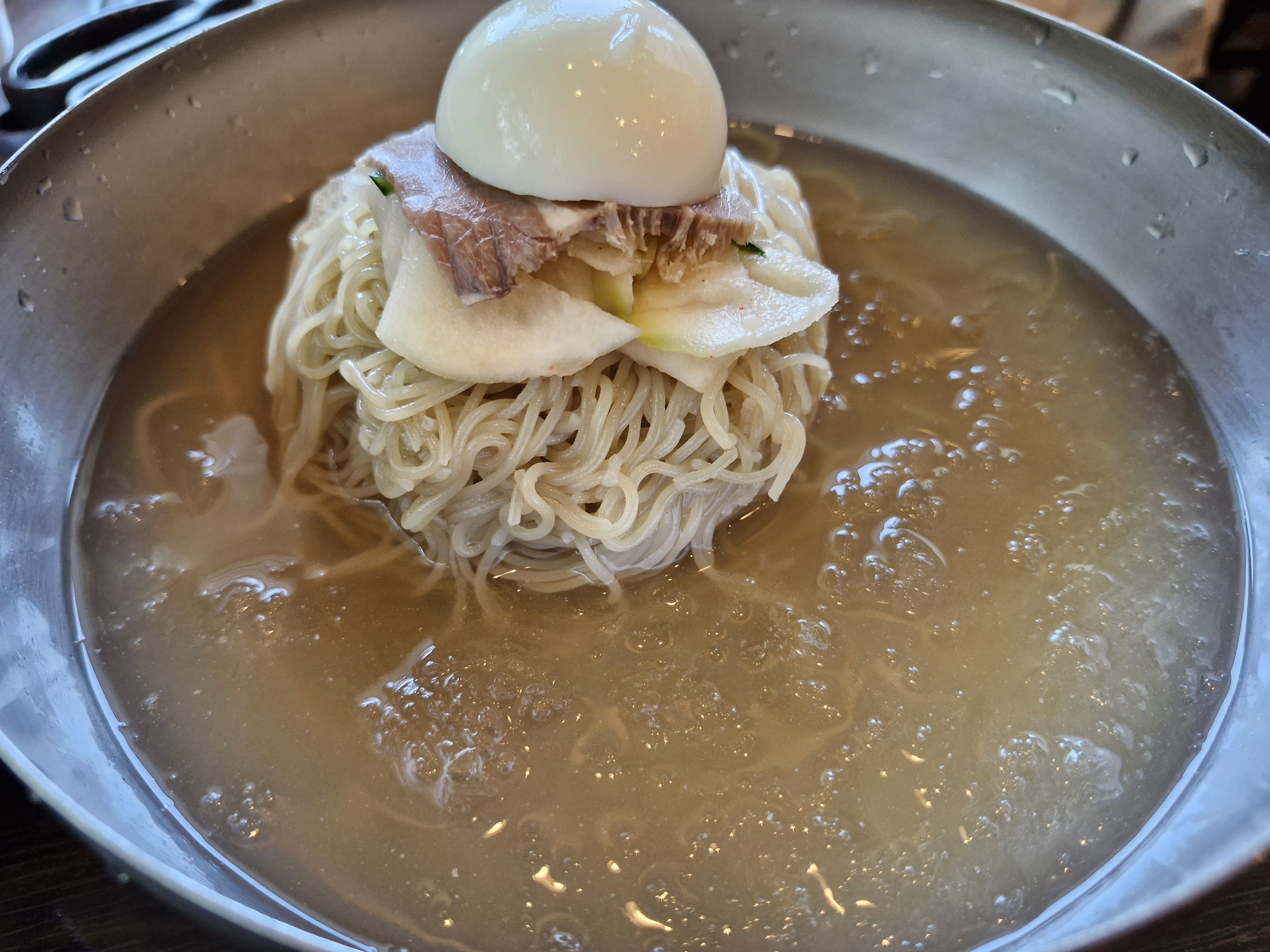냉면 값도 비싸고 일하는 분들도 많던데 육수는 기본으로 가져다줘야 하는 게 아닌가 싶더군요.