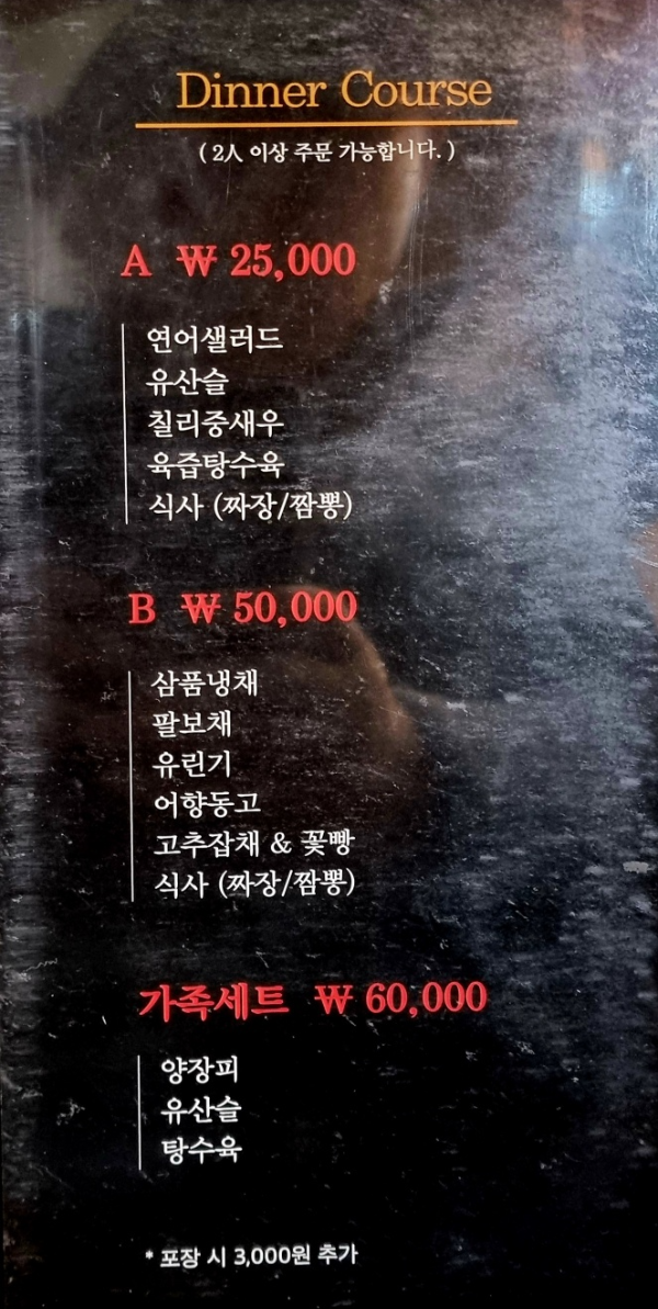 가족 세트 ( 60,000원 )에 나오는 유산슬, 양장피, 탕수육입니다.