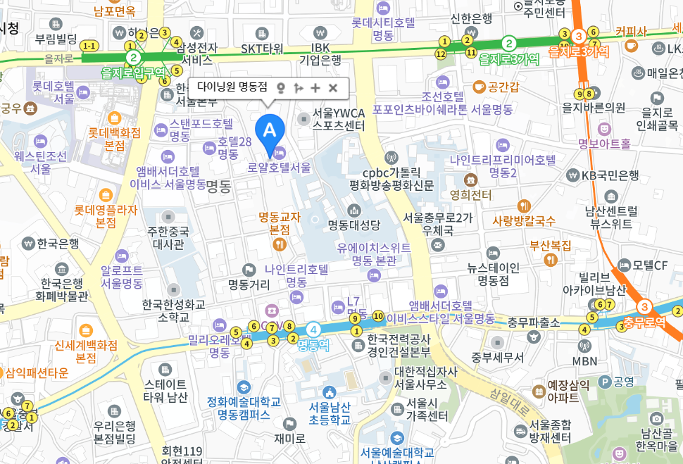 이 날 식사를 하기로 한 곳은 명동 로얄호텔 옆 태흥빌딩 4층에 있는 다이닝원입니다.