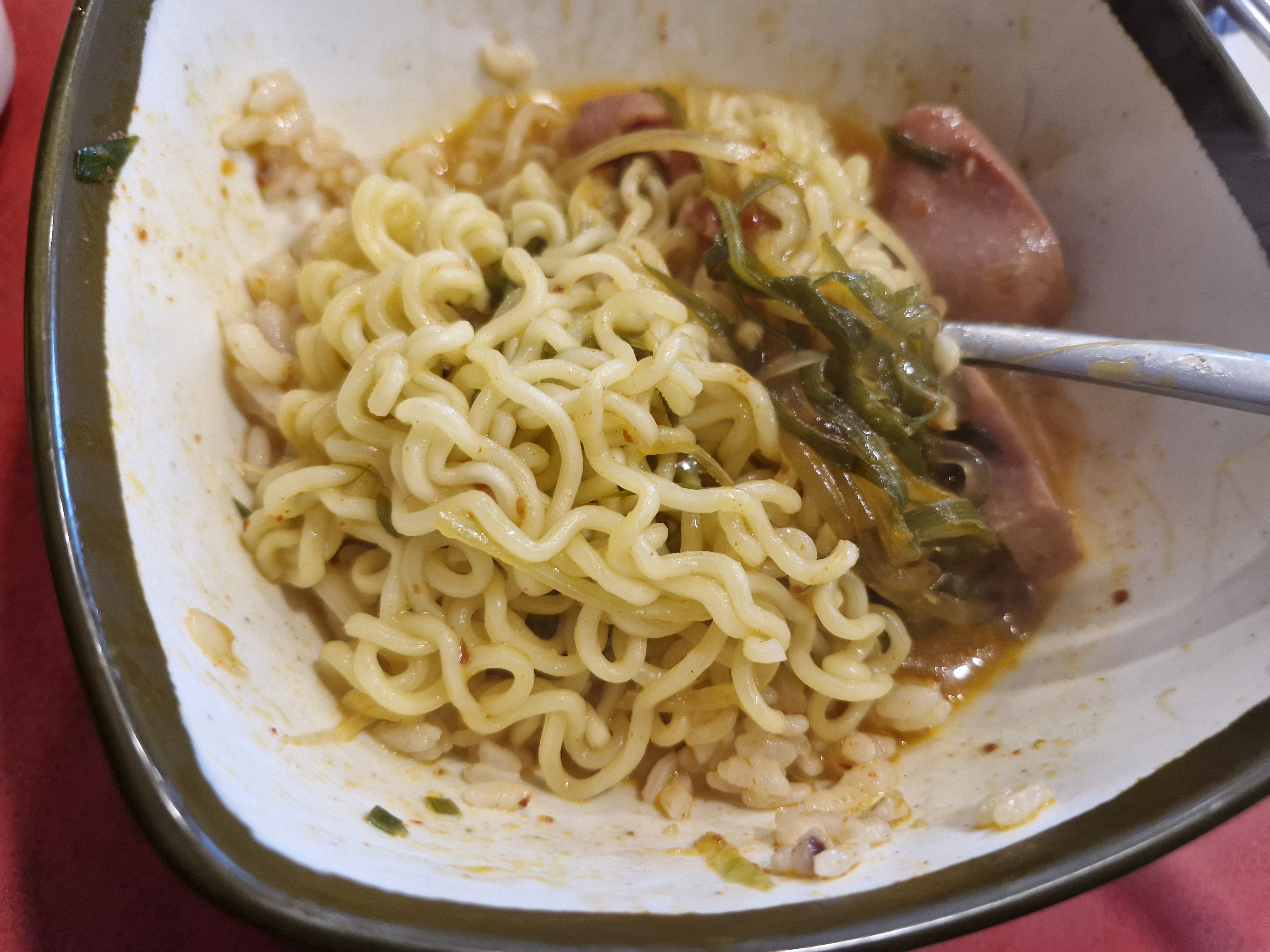 추가로 주문한 라면 사리와 햄, 소 사리