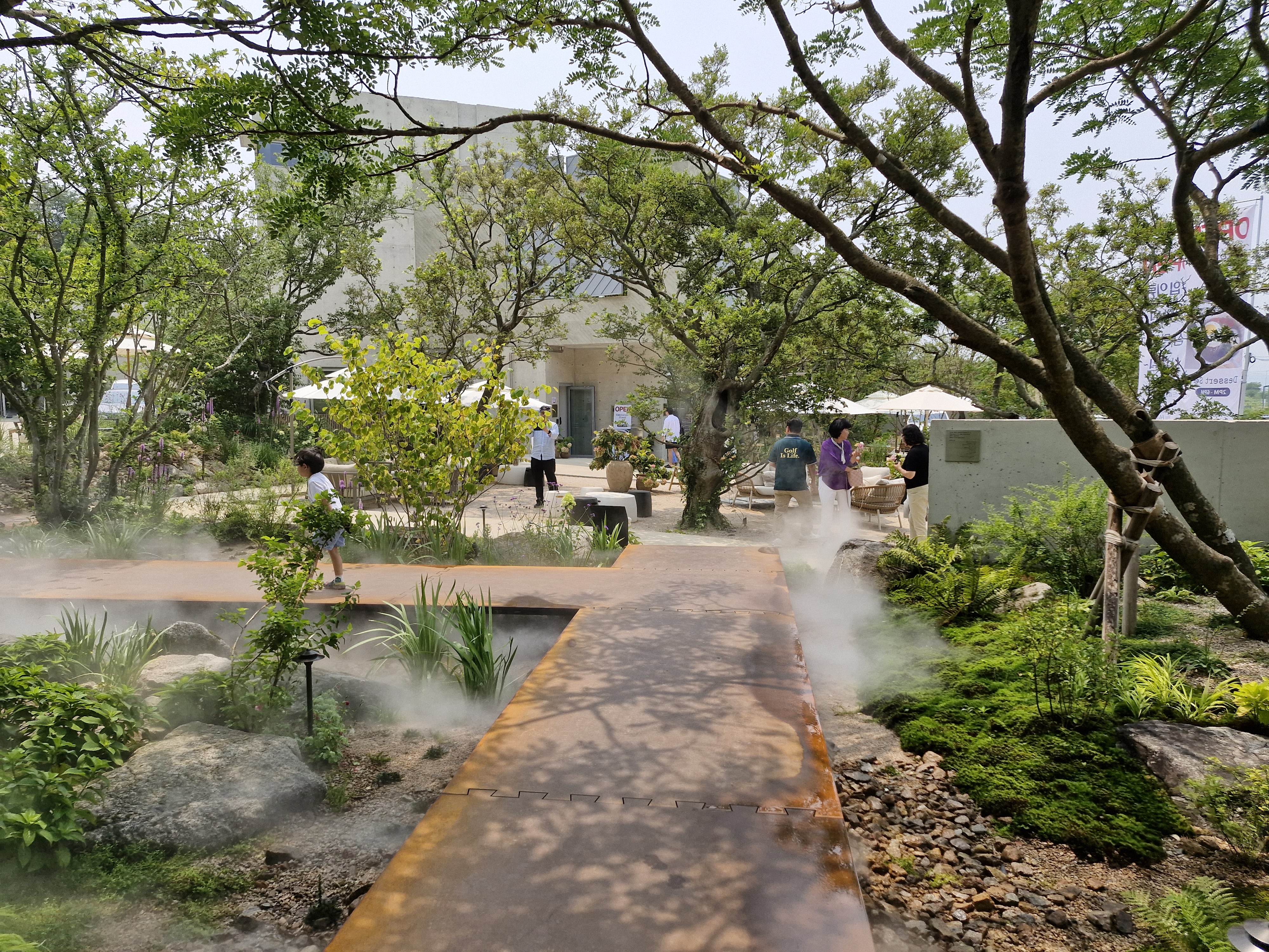 카페를 들어 가는 입구 주변에 안개가 뿜어져 나오는 Mist Garden이 있습니다.