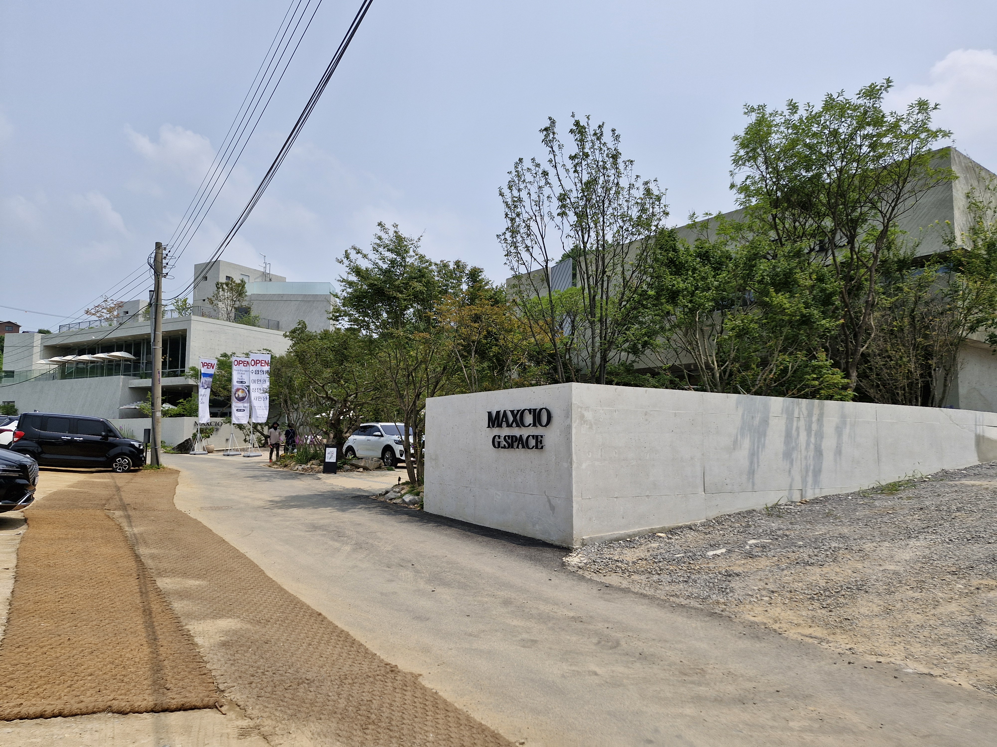 두 개의 큰 건물로 되어 있는데 왼쪽은 베이커리 카페인 막스시오지스페이스 웰송(WELLSONGSONG)이고