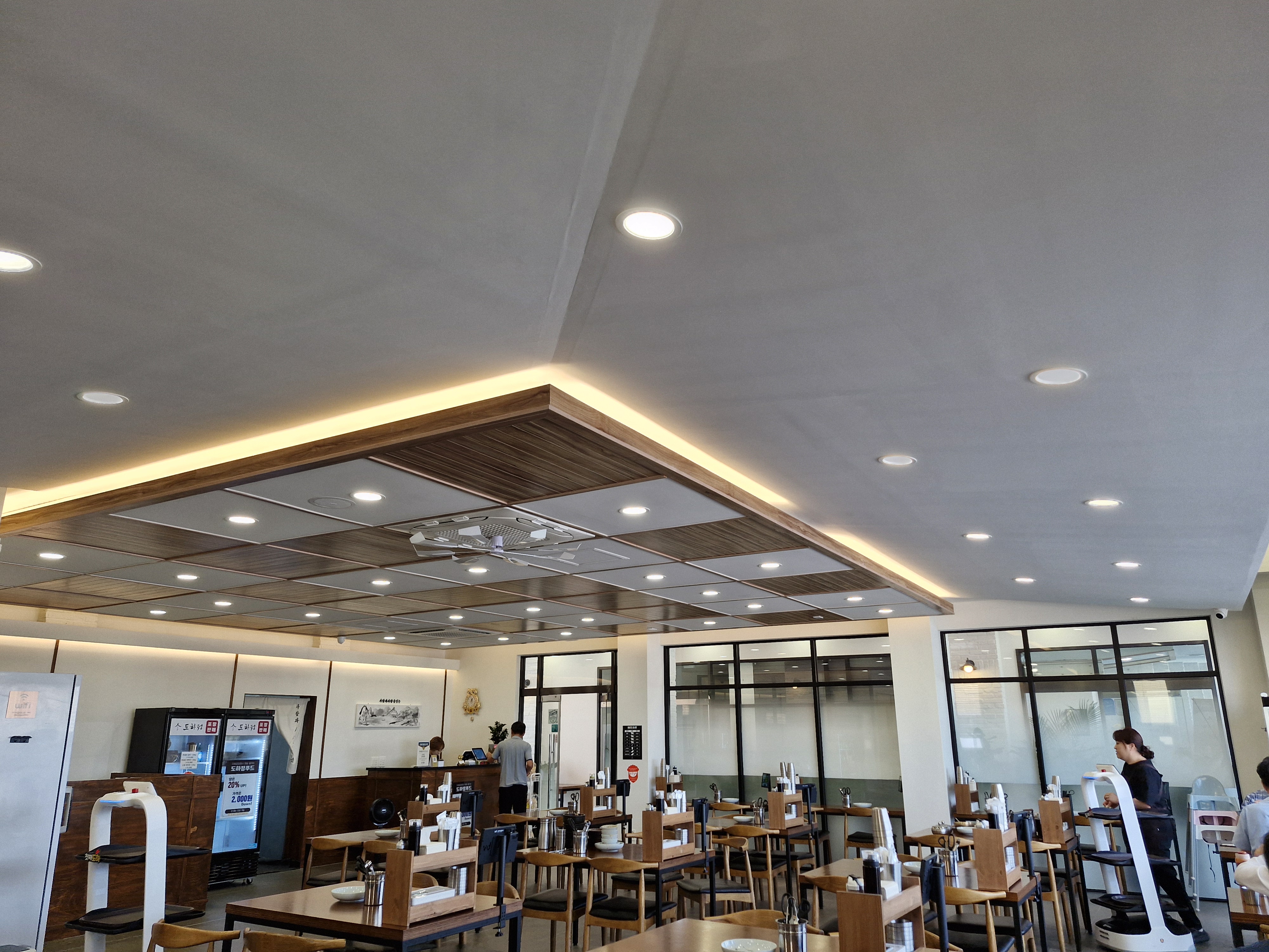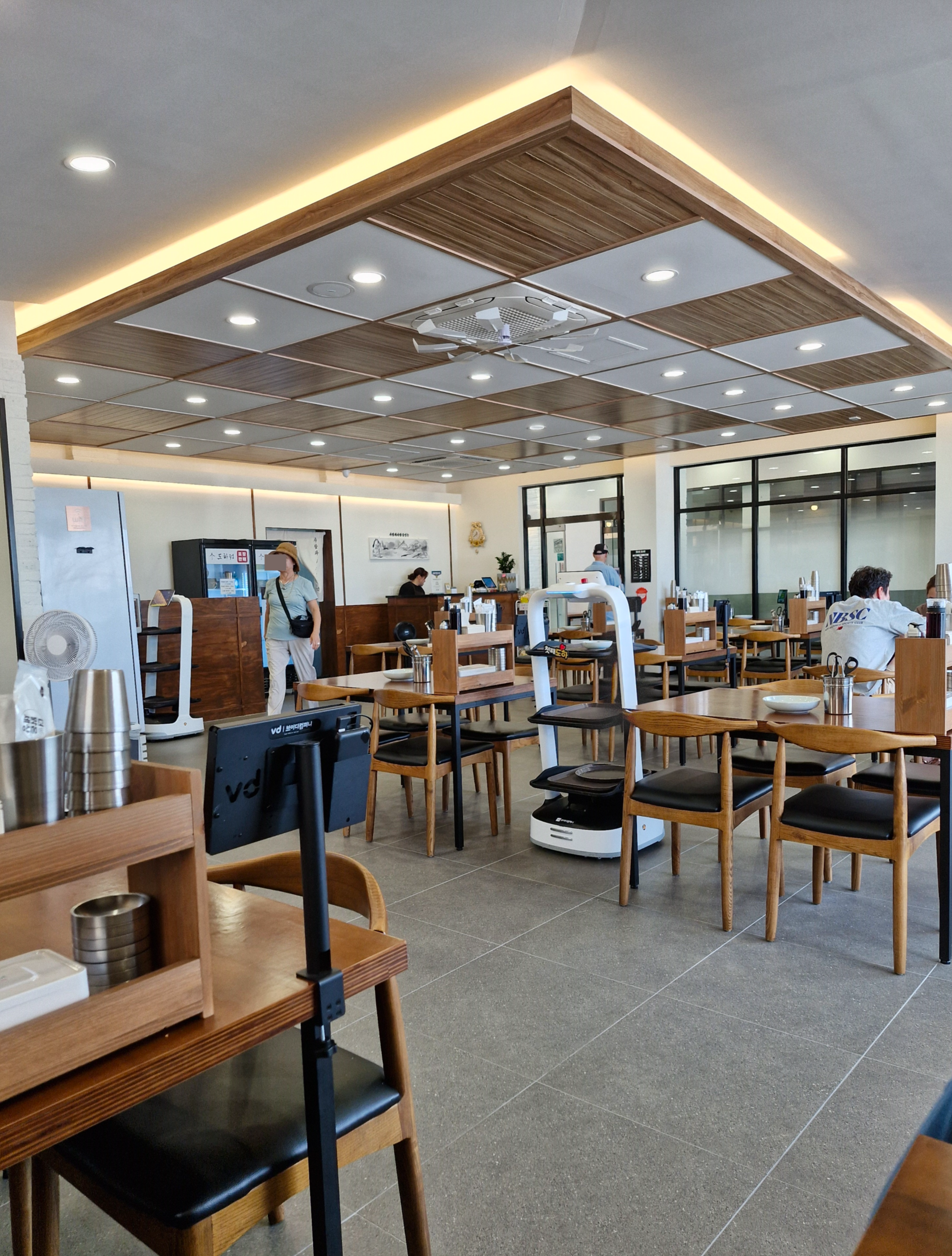 음식도 주문하면 서빙 로봇이 실어다 줘서 각자 알아서 내려놓고 먹어야 합니다.