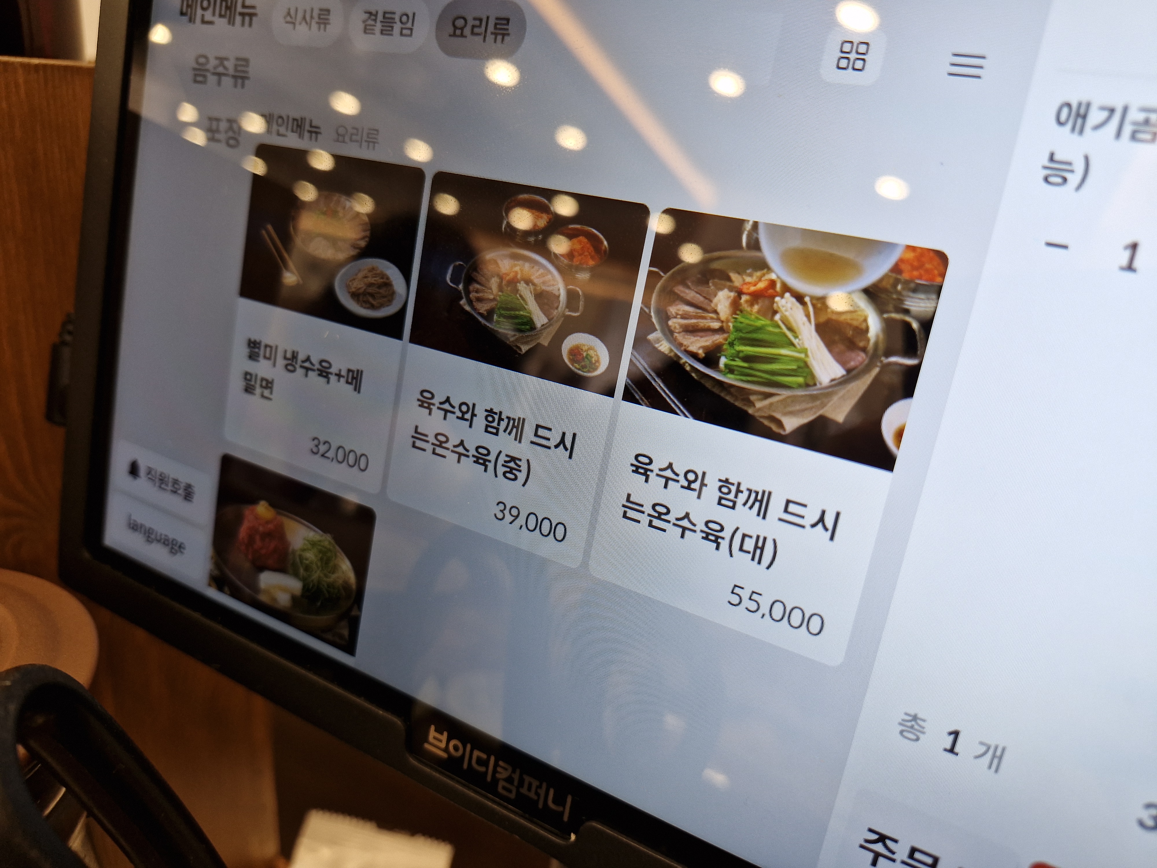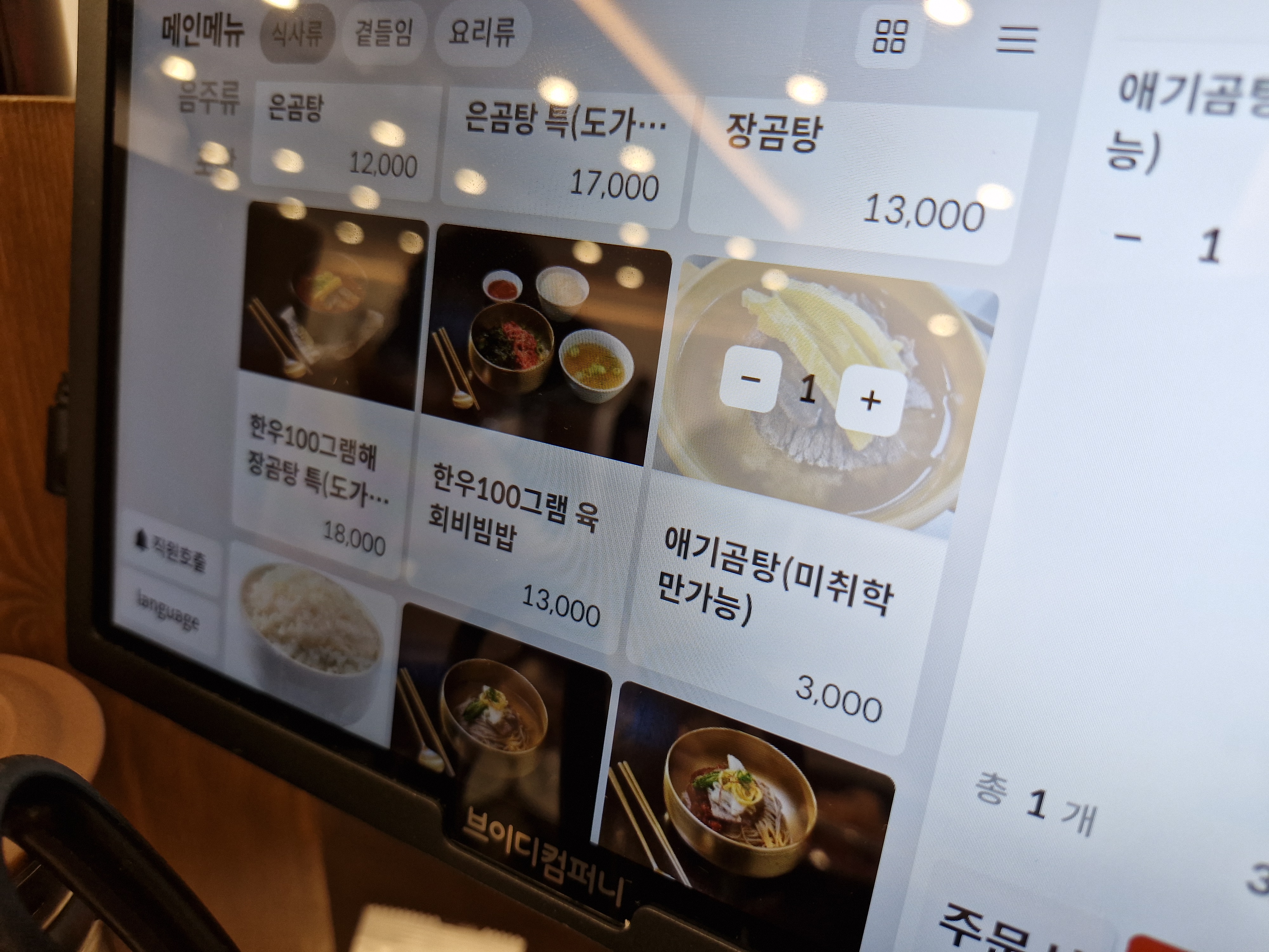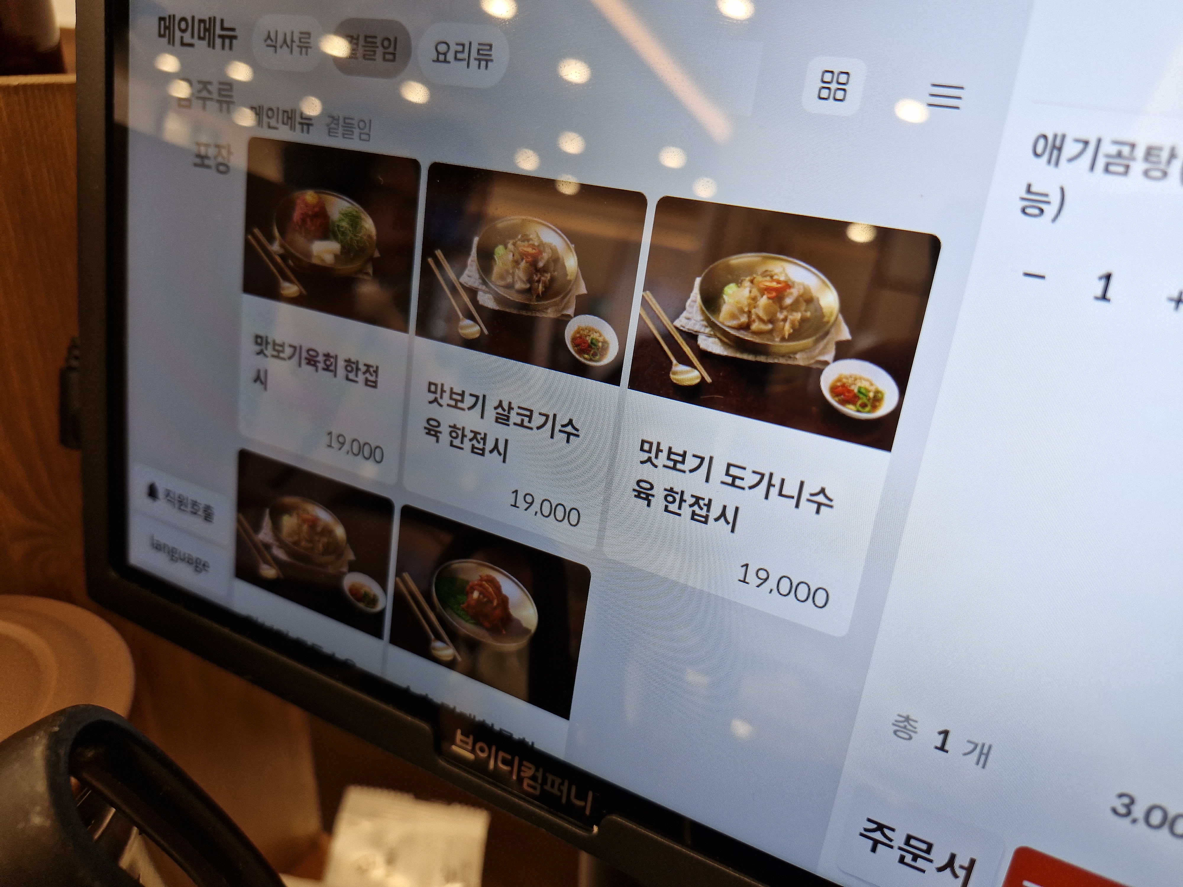 주문과 결제를 태블릿으로 하는 시스템이라 나이 드신 분들은 조금 힘드시겠습니다.