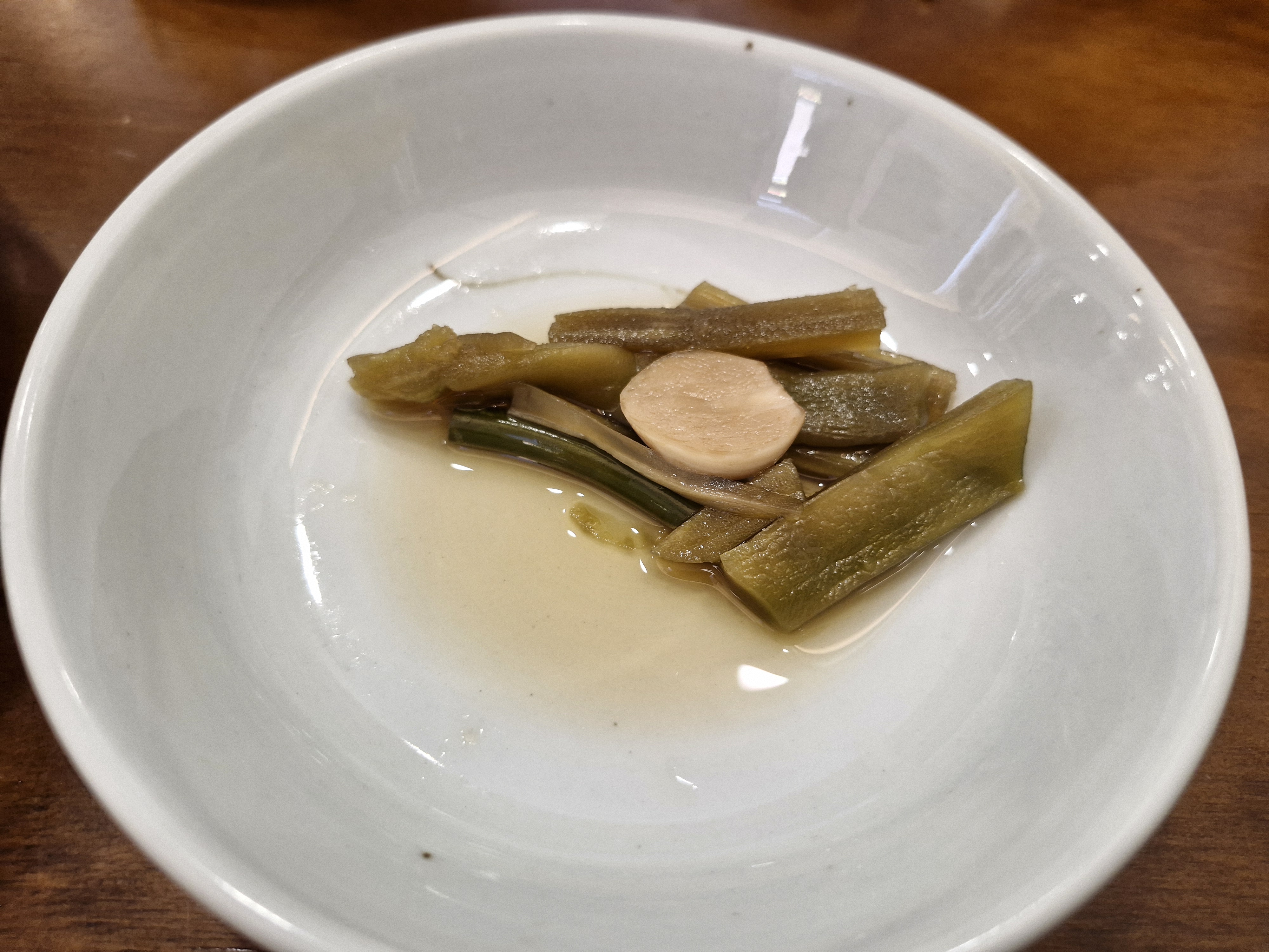밑반찬으로는 김치와 섞박지 그리고 마늘고추장아찌가 나옵니다.