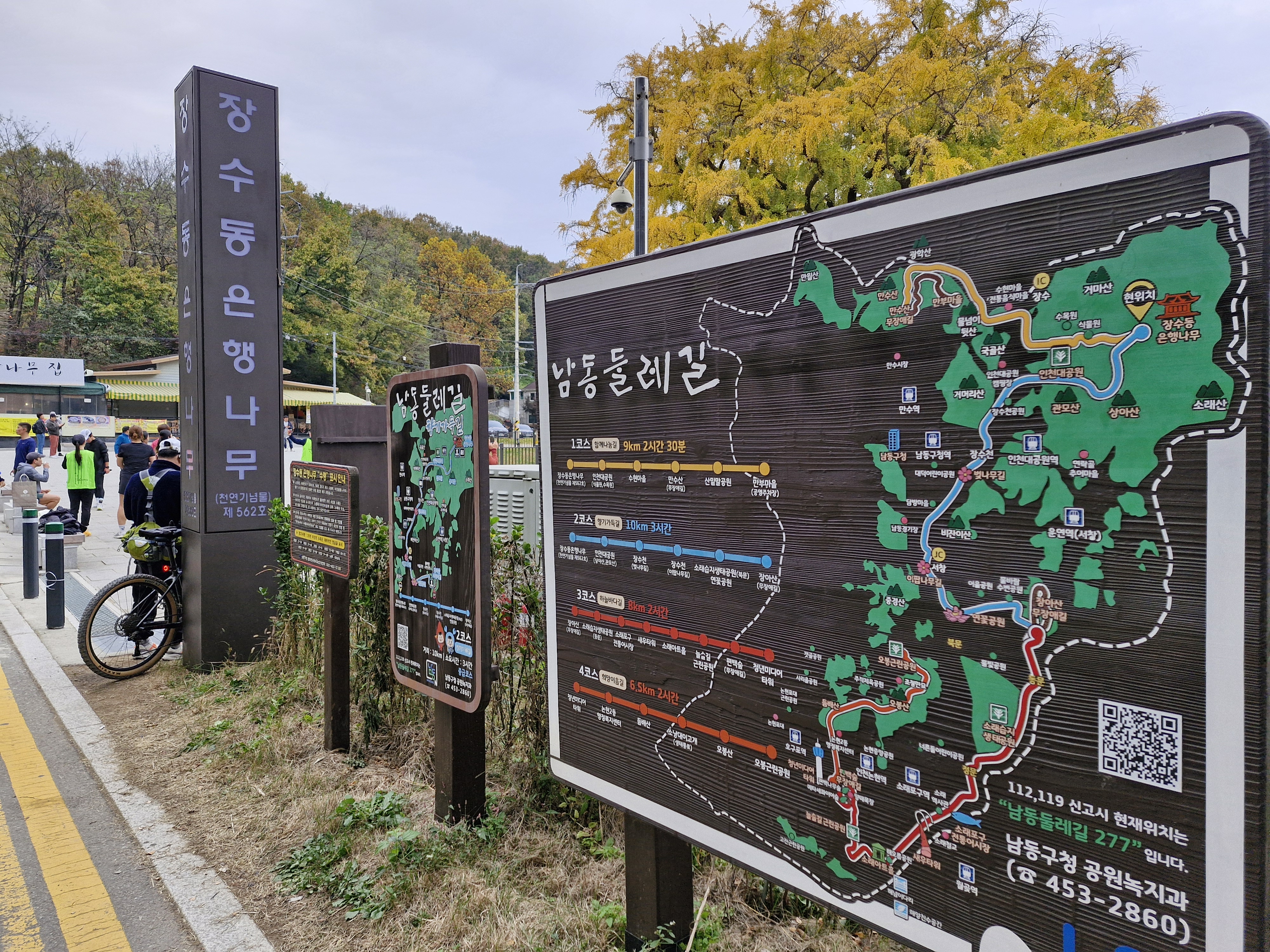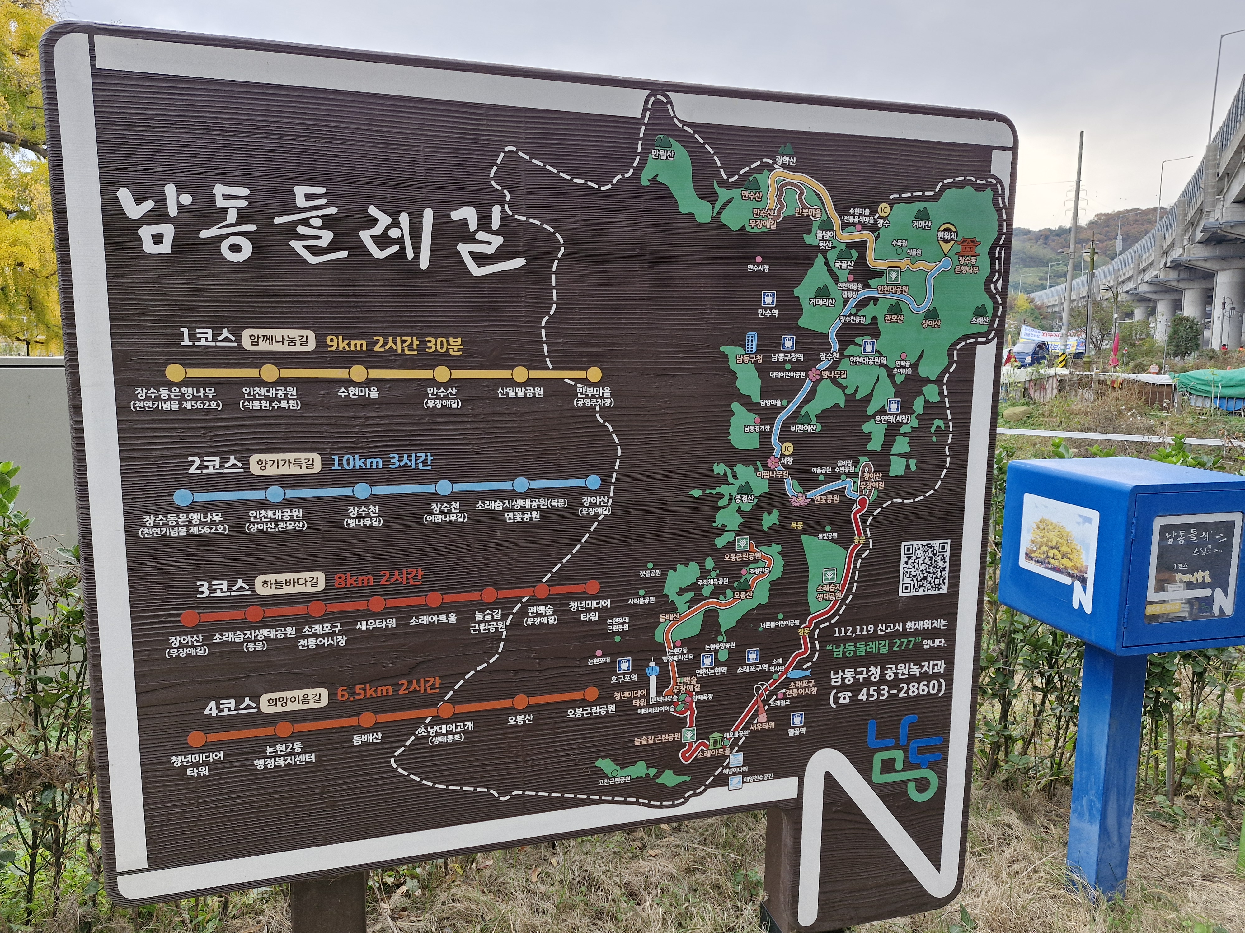 장수동 은행나무를 기점으로 출발하는 남동둘레길 1, 2 코스를 포함한 남동둘레길 안내도도 첨부해 봅니다.