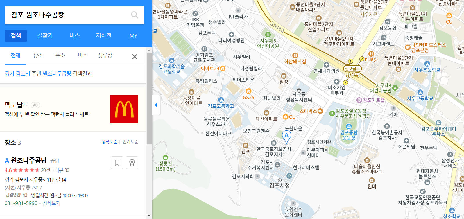 김포 원조 나주곰탕은 김포시 사우동 김포시청 정문앞에서 가깝습니다.(지도 참조)