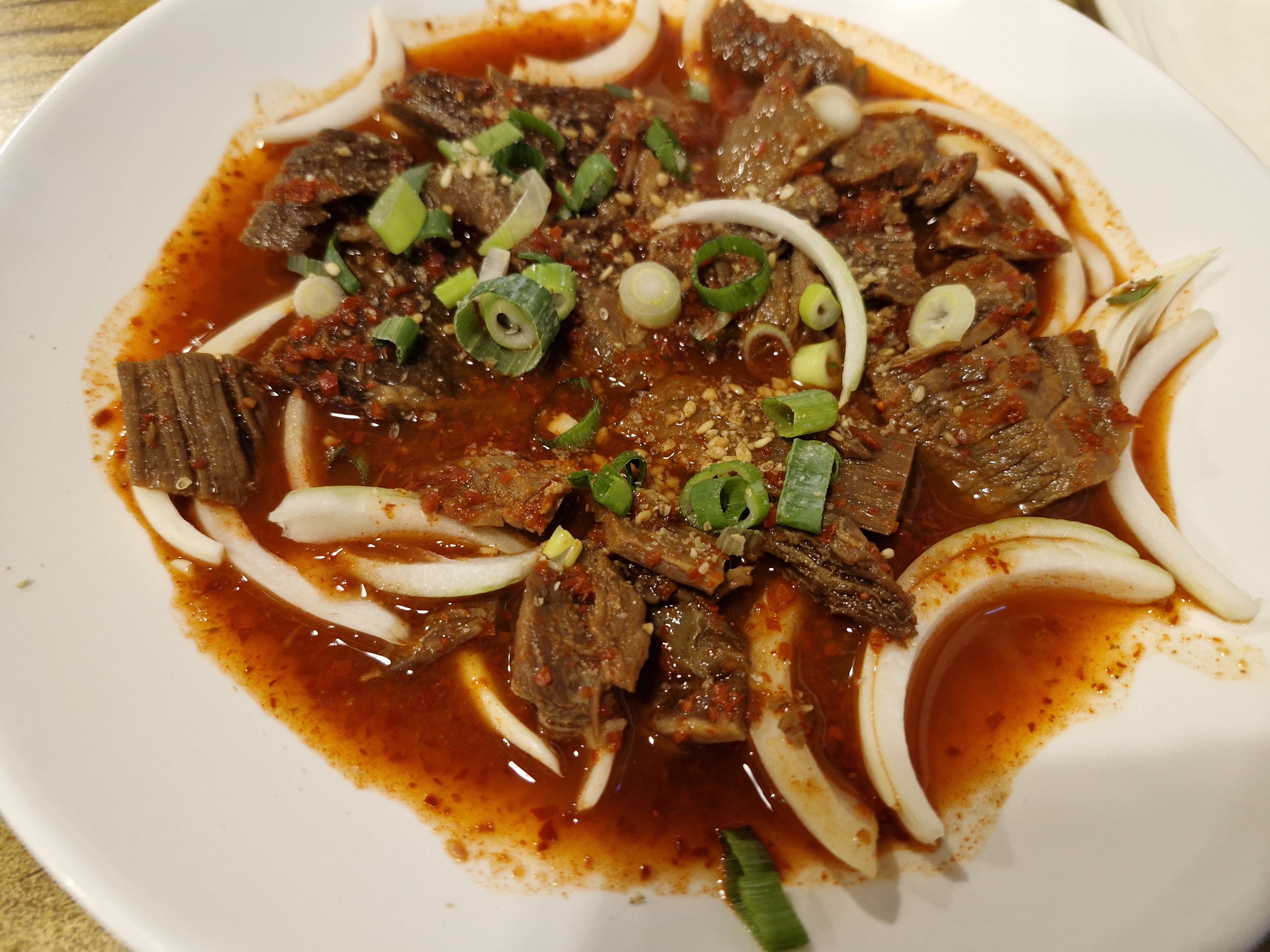 탕을 주문하면 서비스로 나오는 매콤 수육입니다.