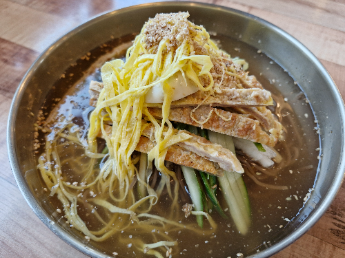 시원한 육수에 육전 올라간 메밀면으로 특히 인기가 많습니다.