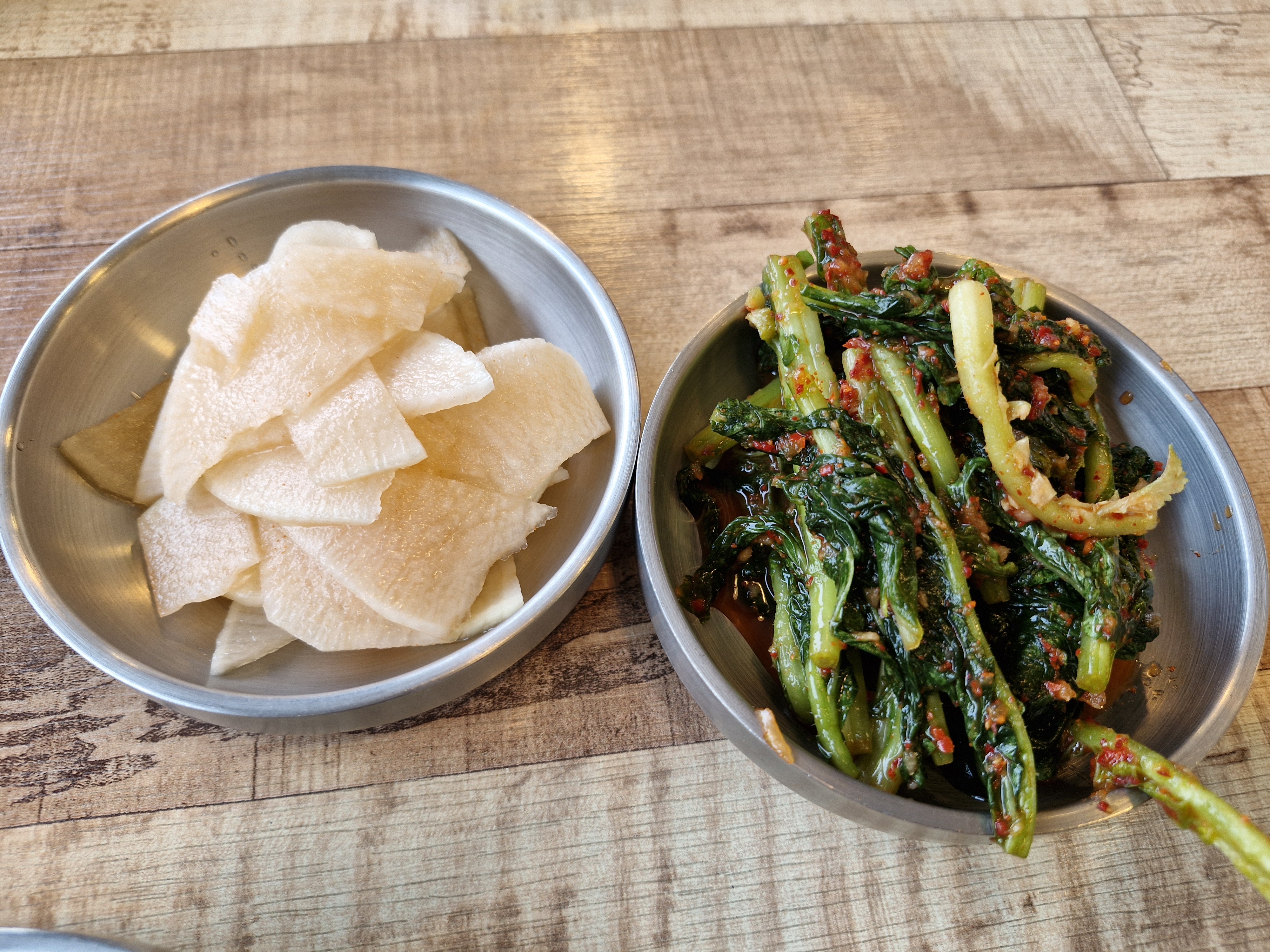밑반찬은 냉면무와 열무김치로 1년 내내 똑같습니다.