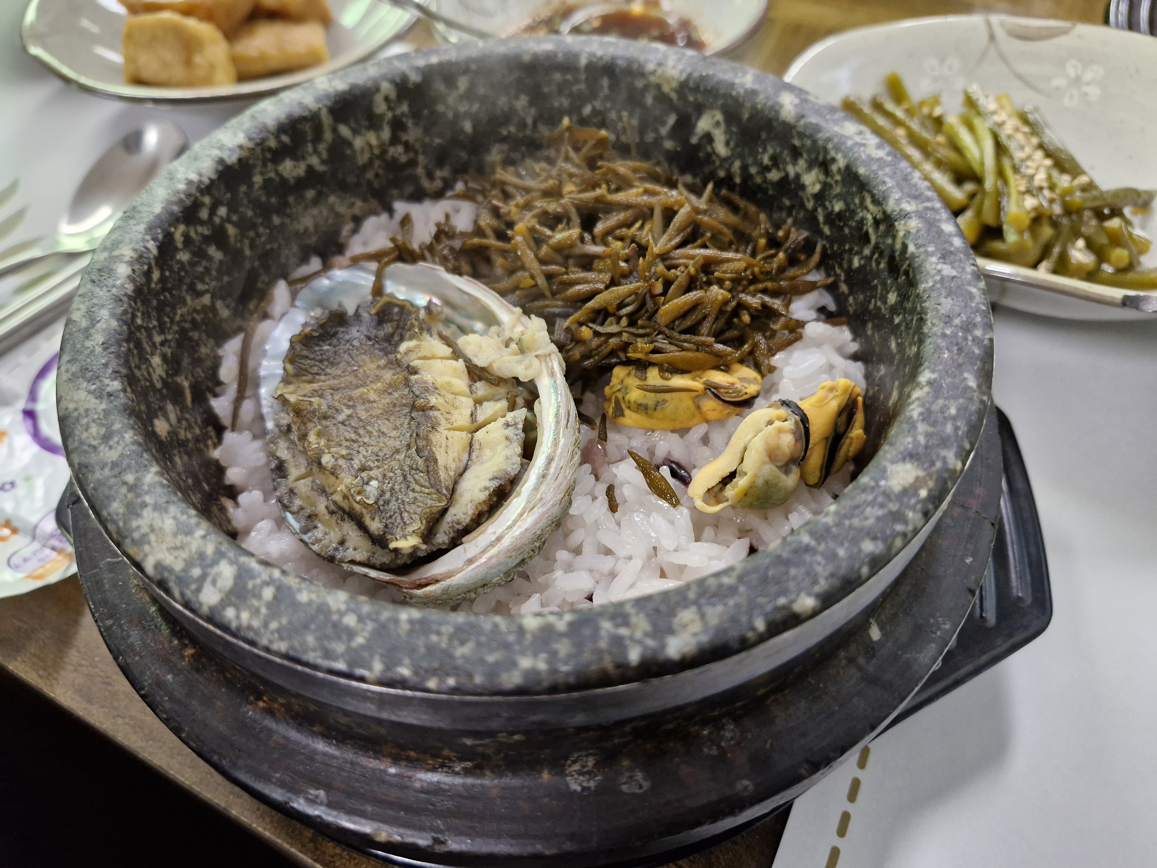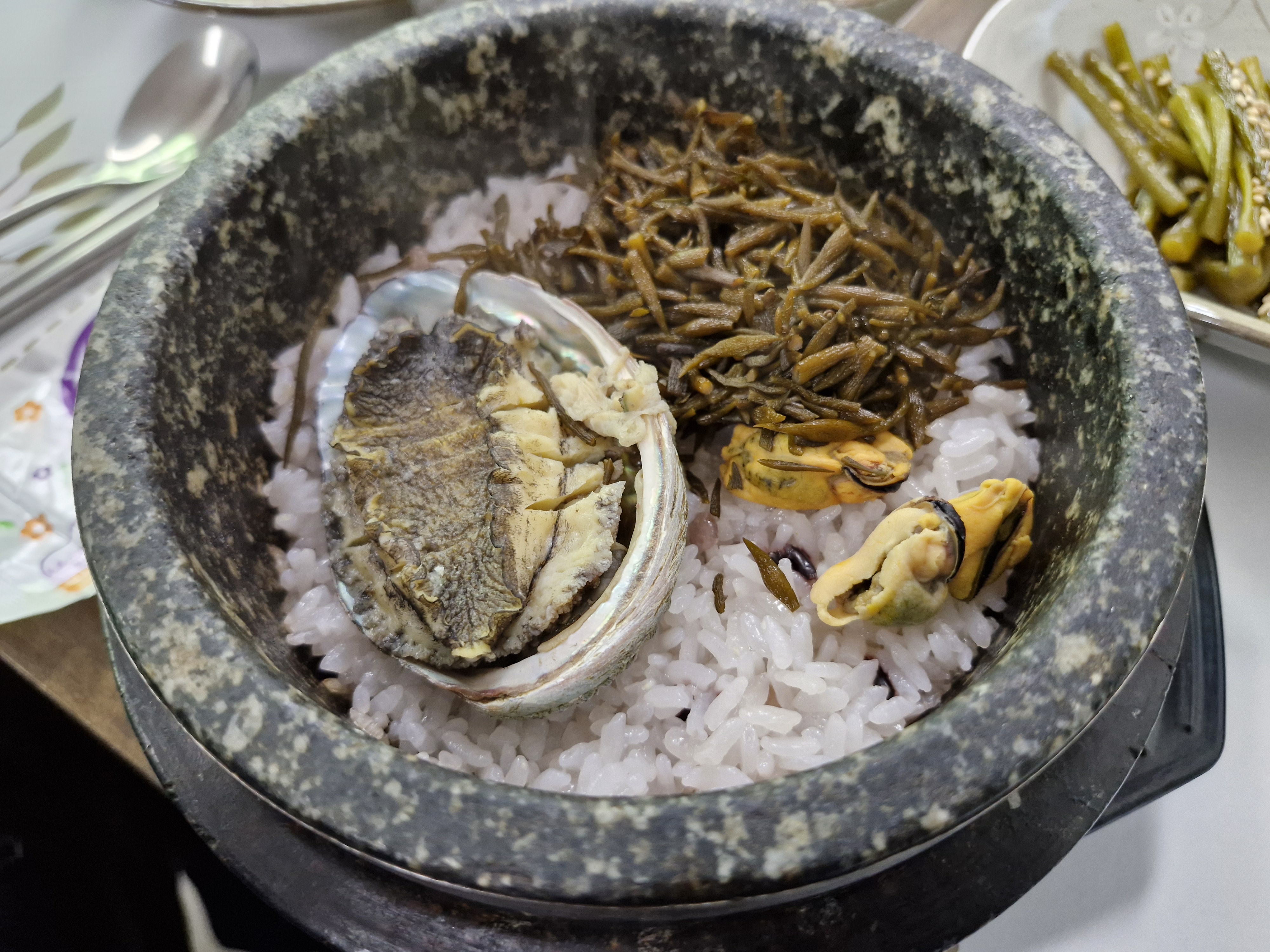 전복해초돌솥밥입니다.