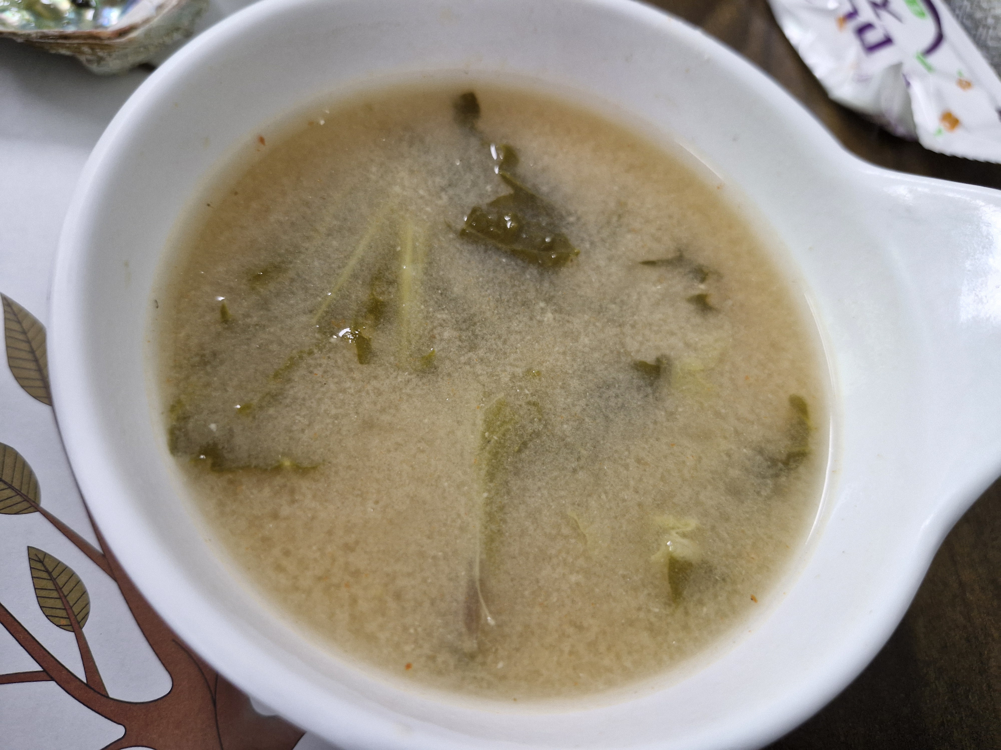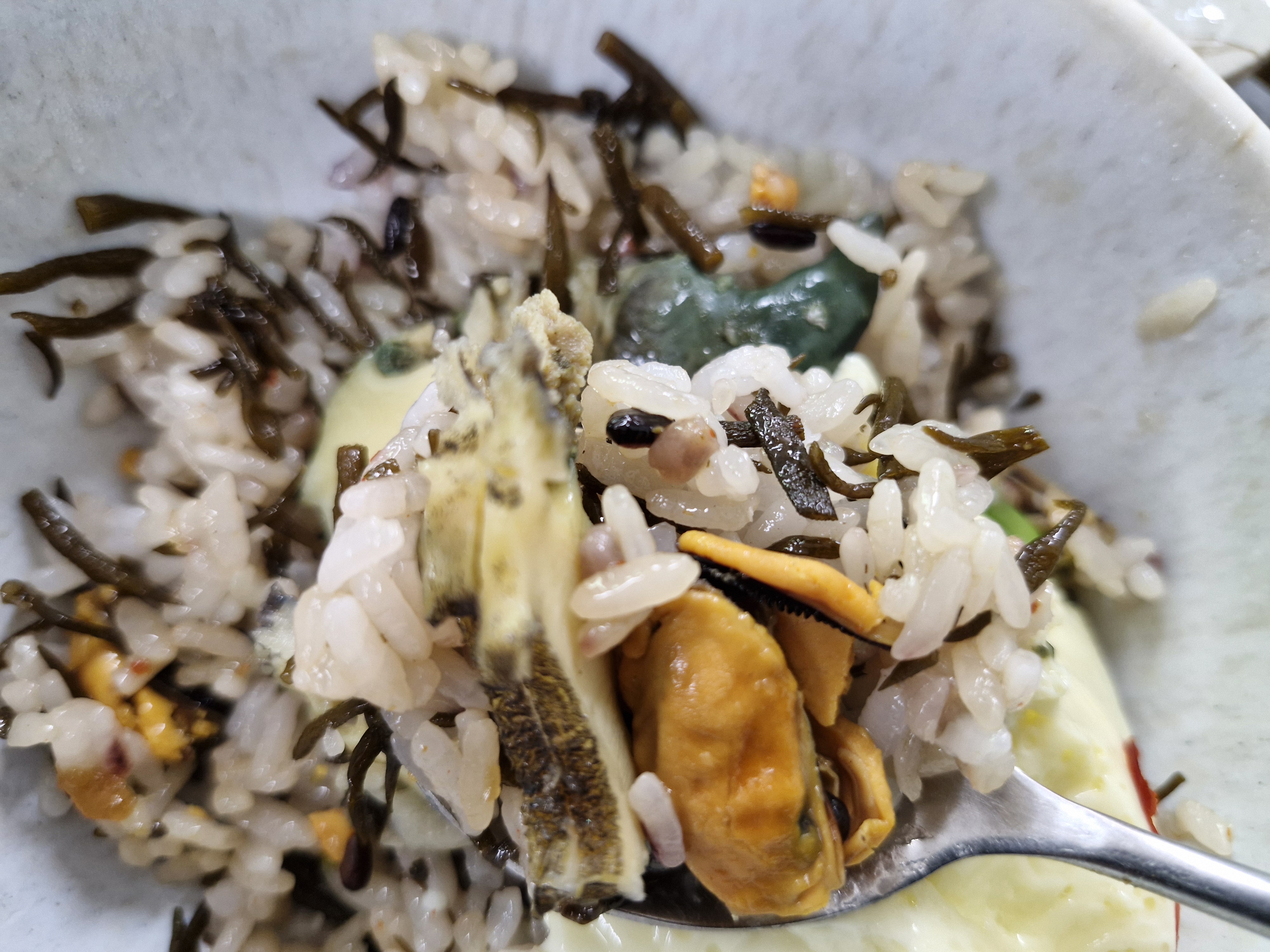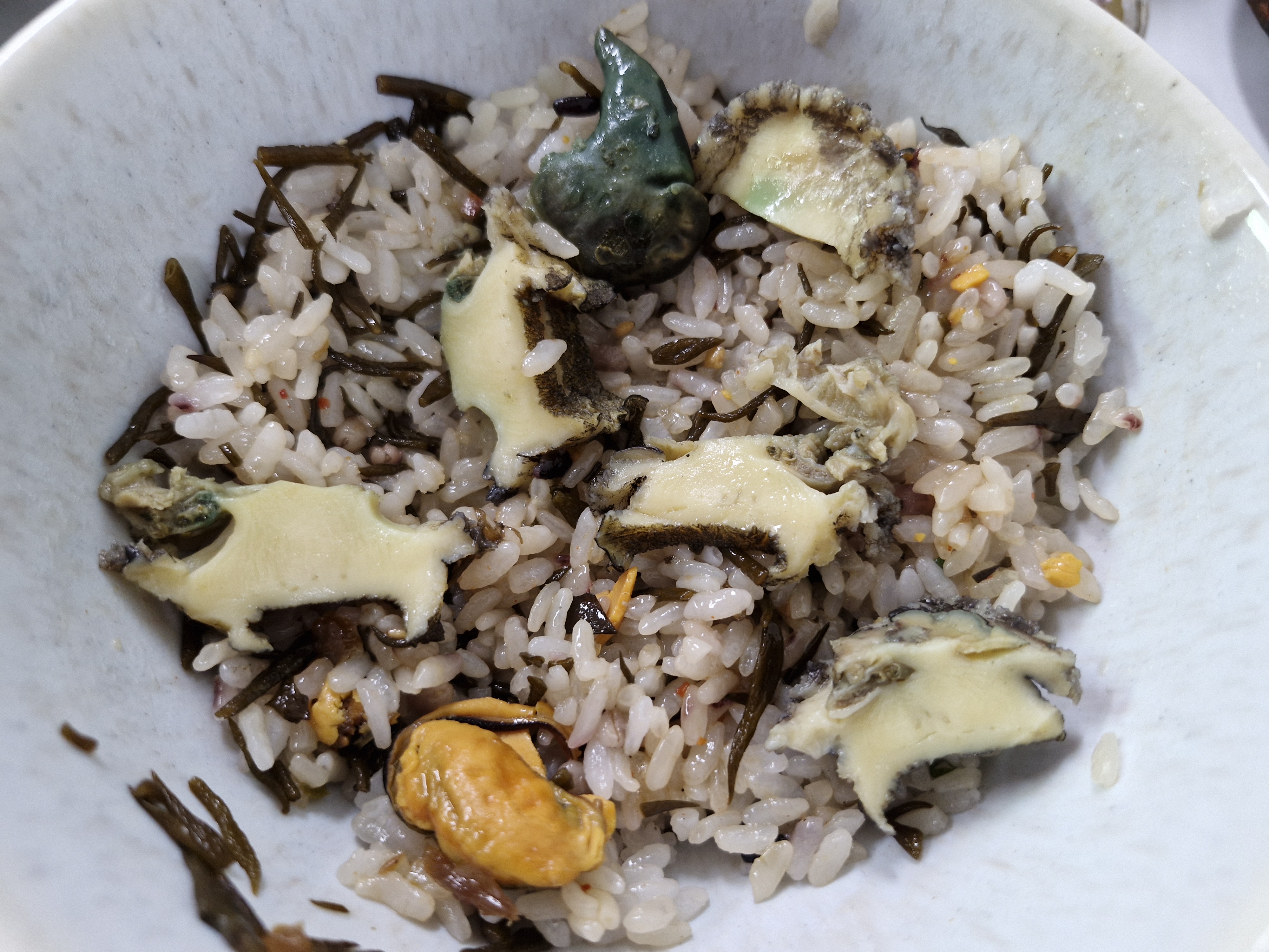 큼직한 전복 한 마리에 해초와 홍합이 들어가 있더군요.