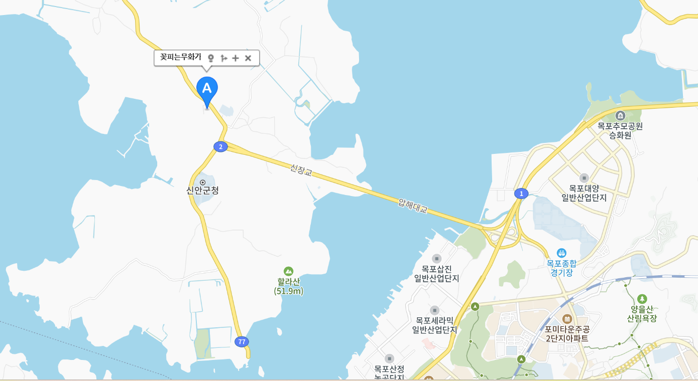 신안 천사대교를 가는 길로 약 5분 정도 차로 달리다 보면 좌측 길 안쪽에 자리하고 있습니다.