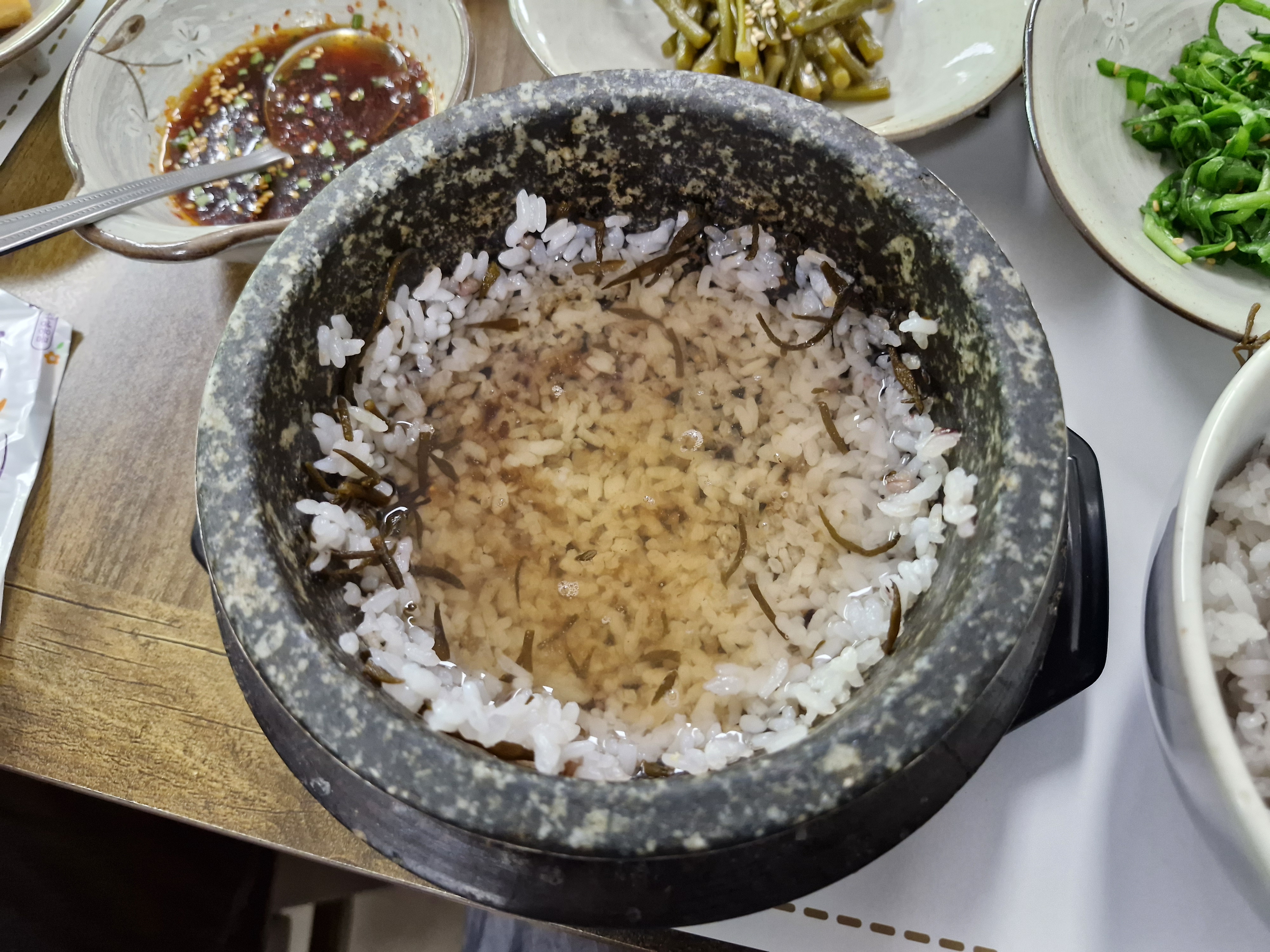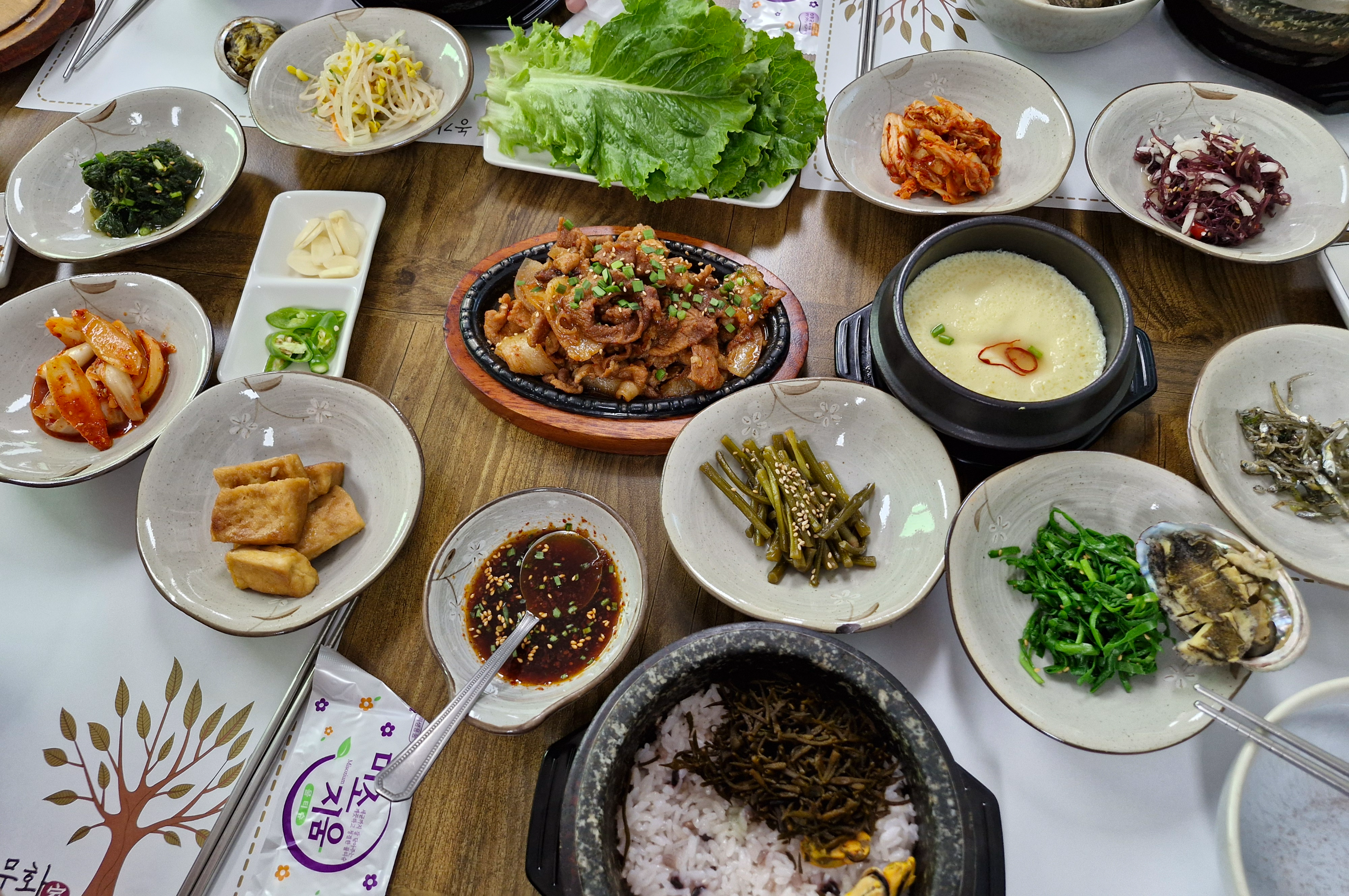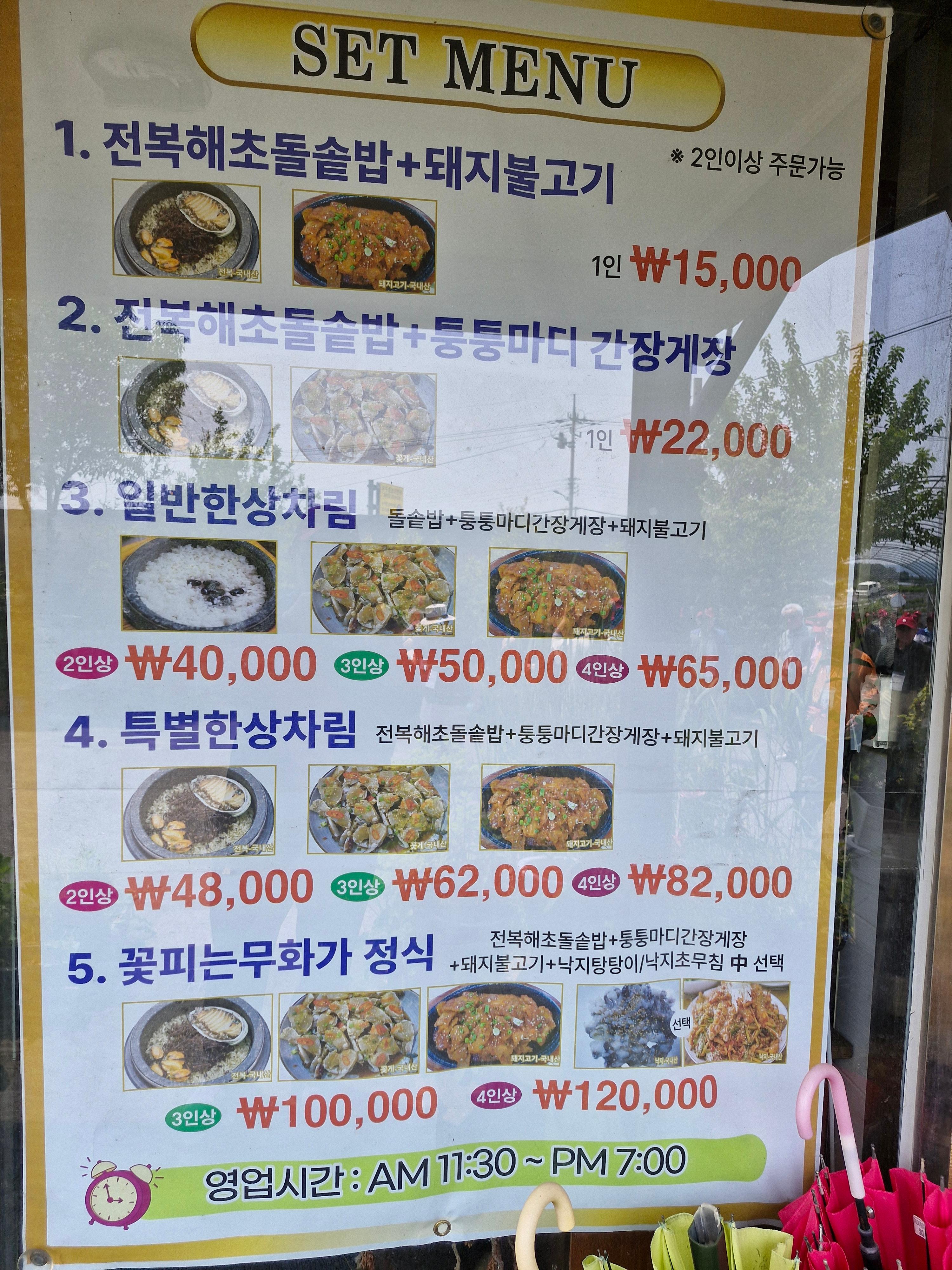 우리 일행들은 전복해초돌솥밥 + 돼지 불고기로 먹었는데 가격은 1인 15,000원입니다.