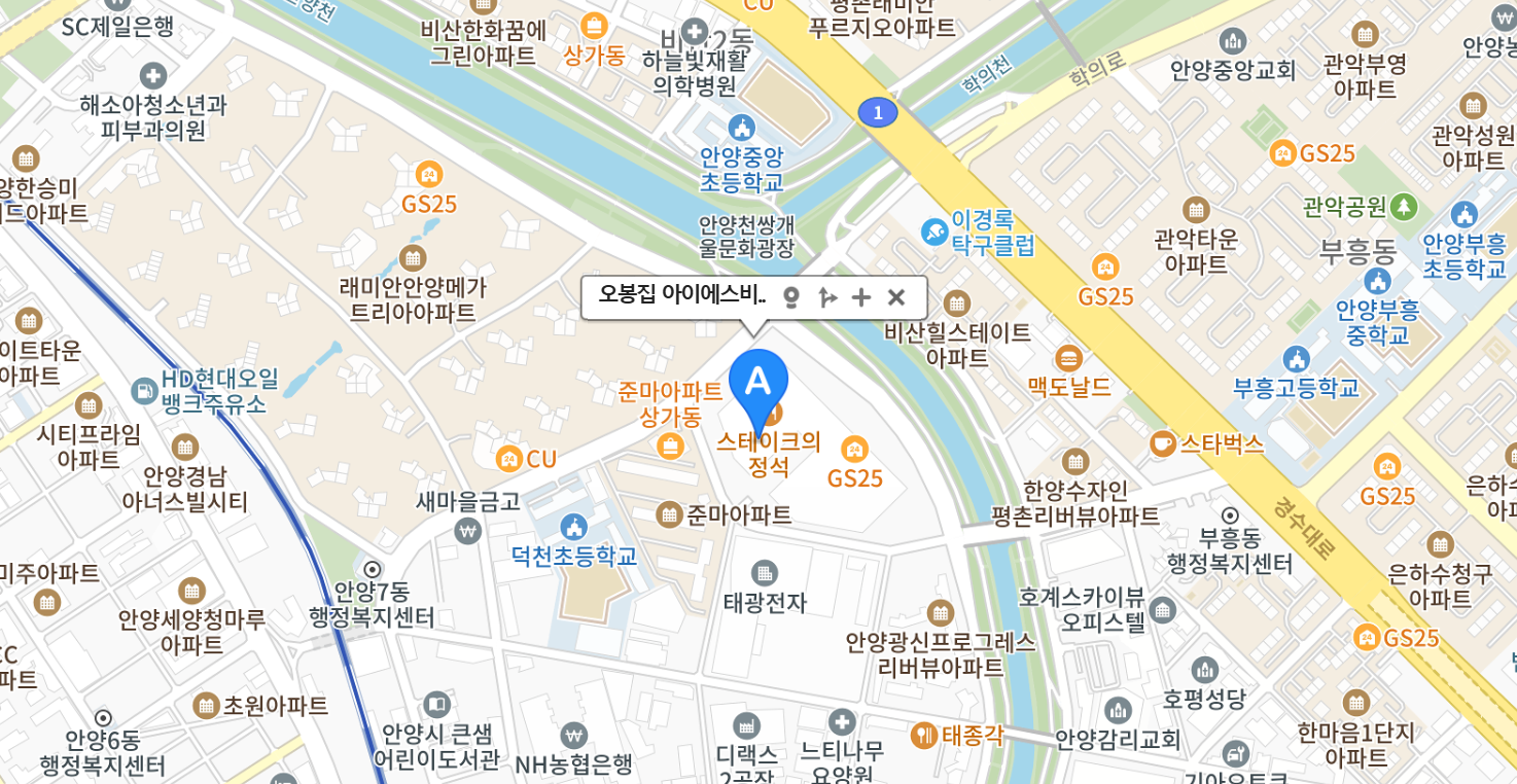 오봉집 안양 아이에스비즈타워점은 흔히 덕천마을이라고 부르는 안양 7동 아이에스비즈타워