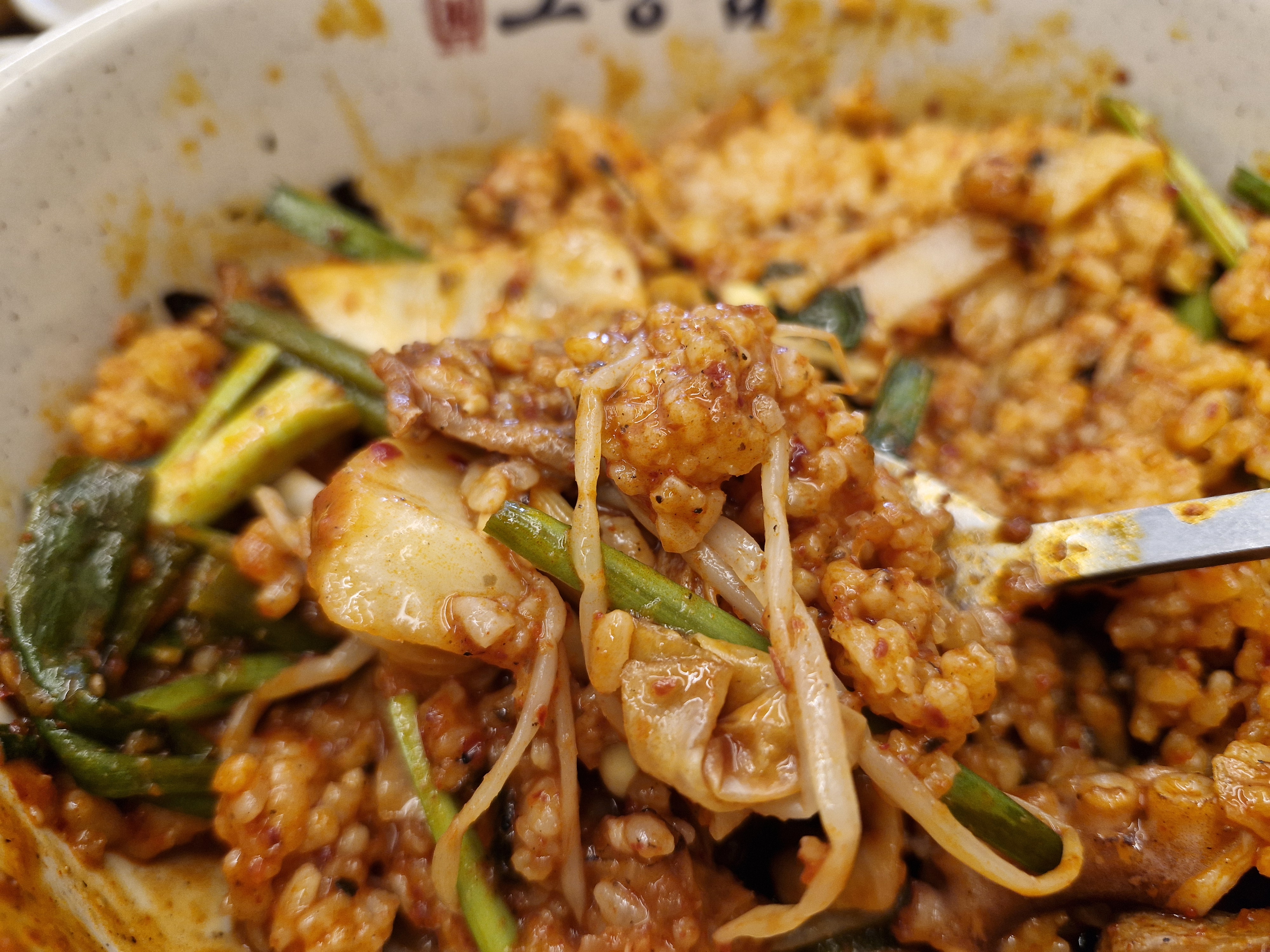 낙지볶음은 살짝 칼칼한 맛인데 밥을 비벼 먹으니 아주 맛있습니다.