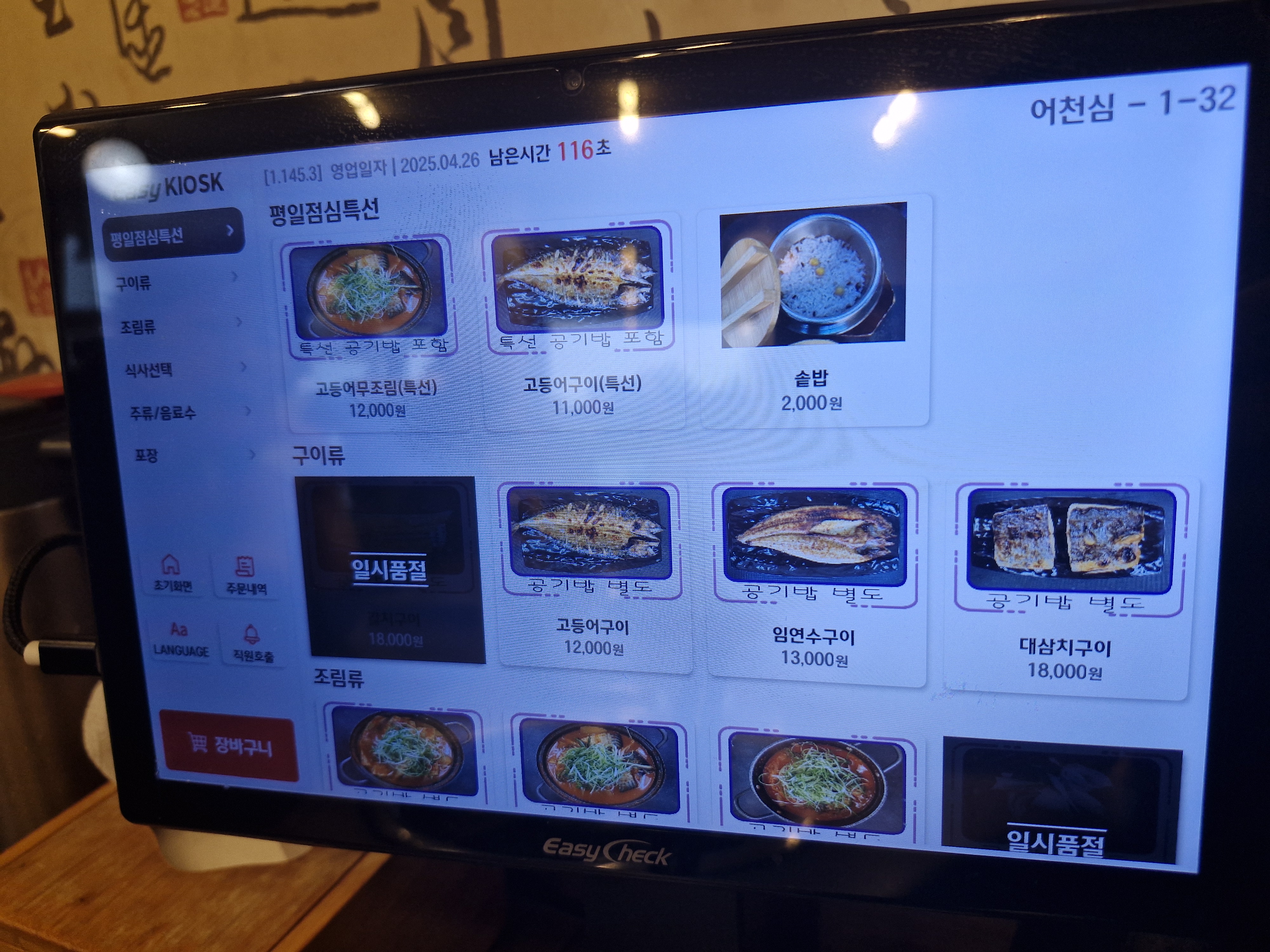 주문은 자리에 있는 키오스크를 통해 할 수도 있지만 사용이 불편하신 분들은 그냥 주문해도 괜찮습니다.