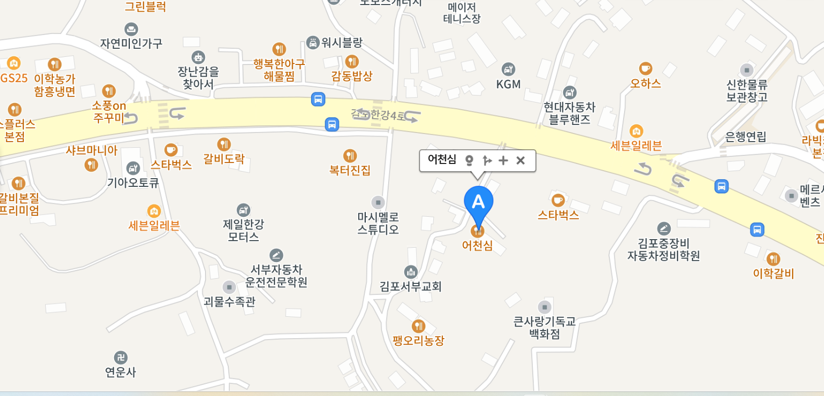 김포 생선구이 & 생선조림 맛집 어천심은 맛집들이 많이 몰려 있는 양촌읍 석모리에 자리하고 있습니다.