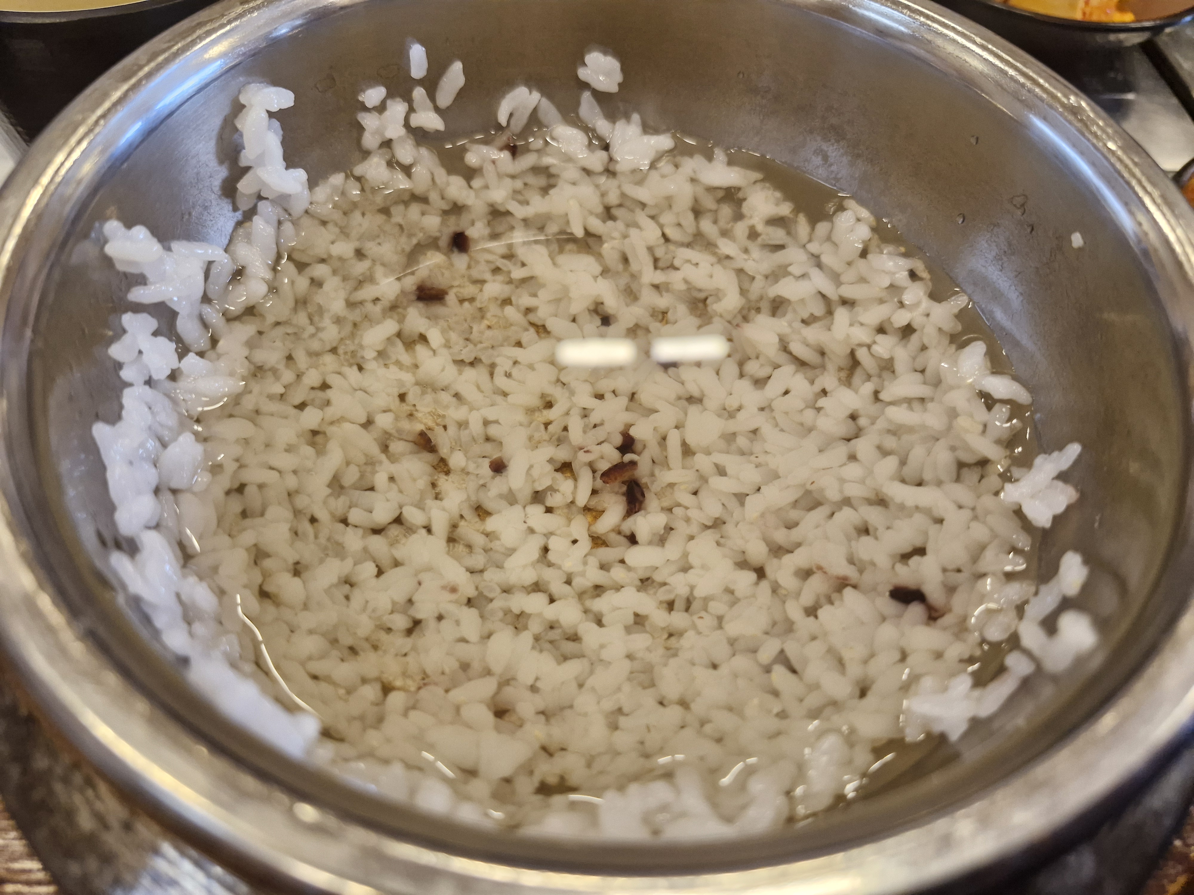 솥밥은 바로 지어 오는 밥이라 특히 더 맛이 좋고 밥을 덜고 물을 부어 눌은밥과 숭늉을 만들어 먹어도 좋습니다.