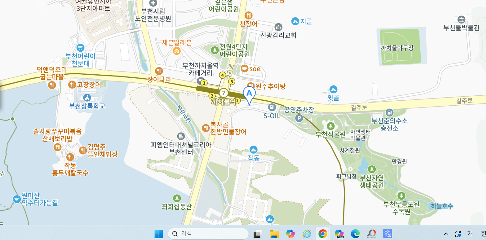 부천자연생태공원의 위치는 지하철 7호선 까치울역 1번 출구에서 300m 정도입니다.