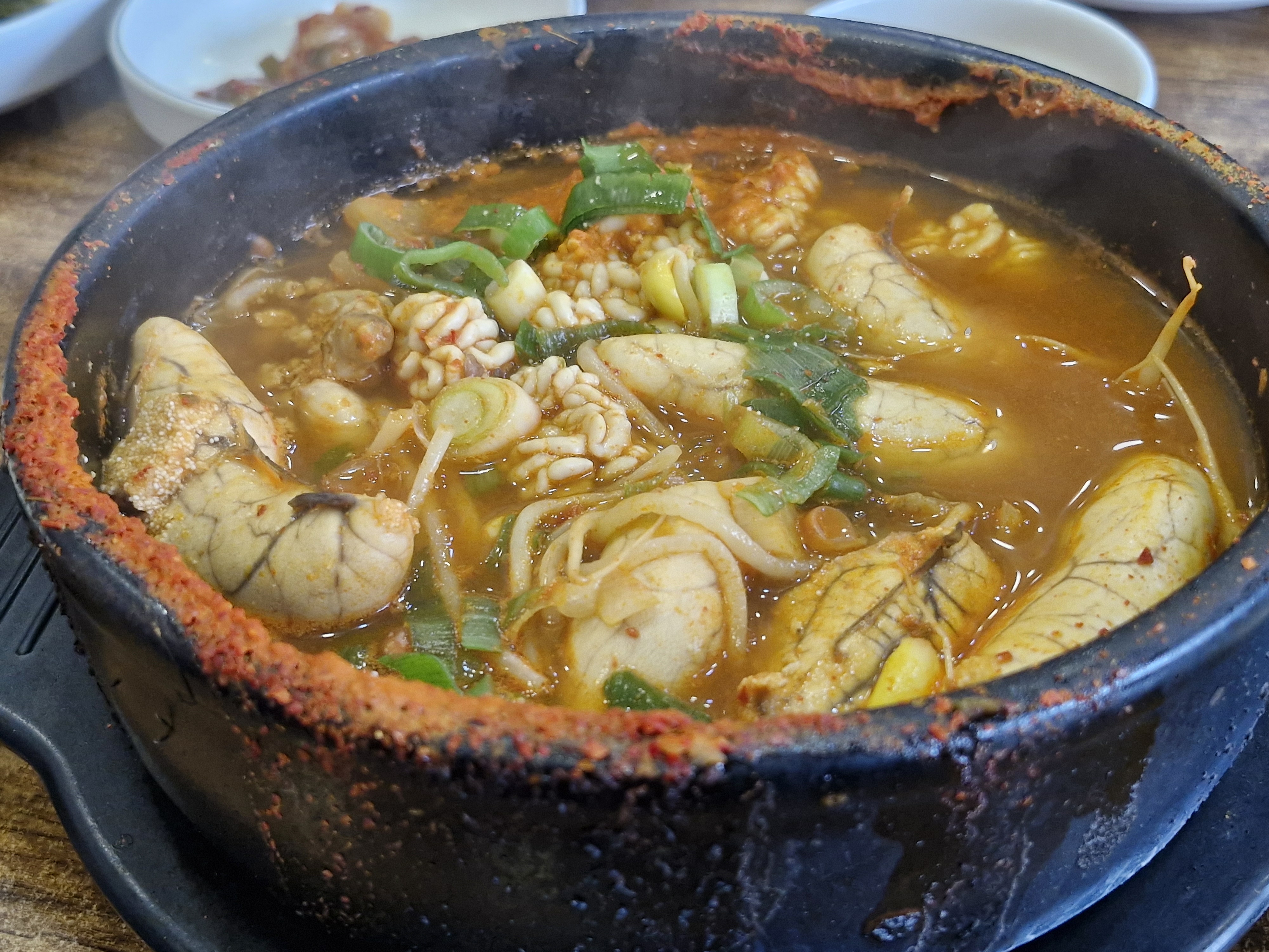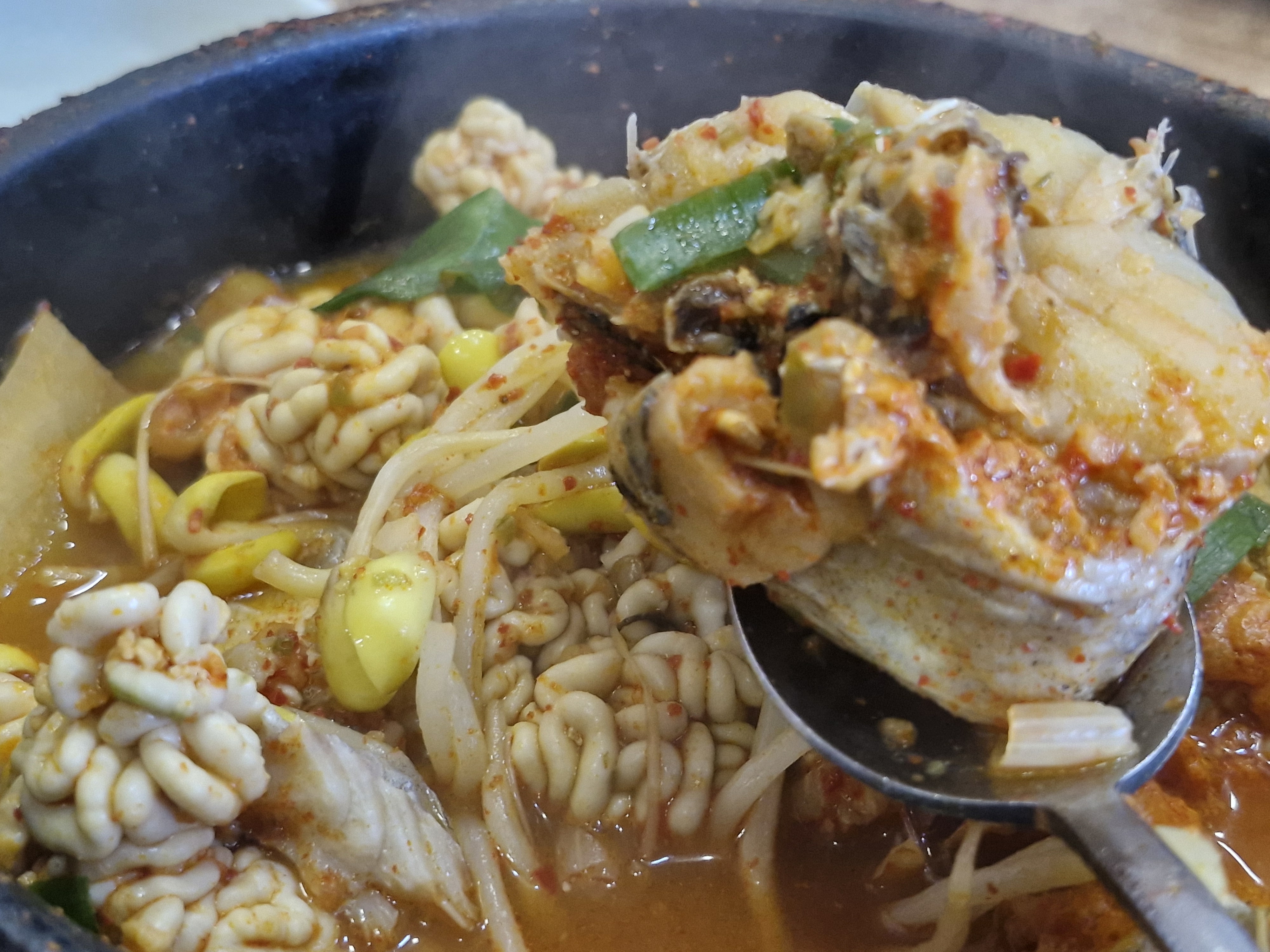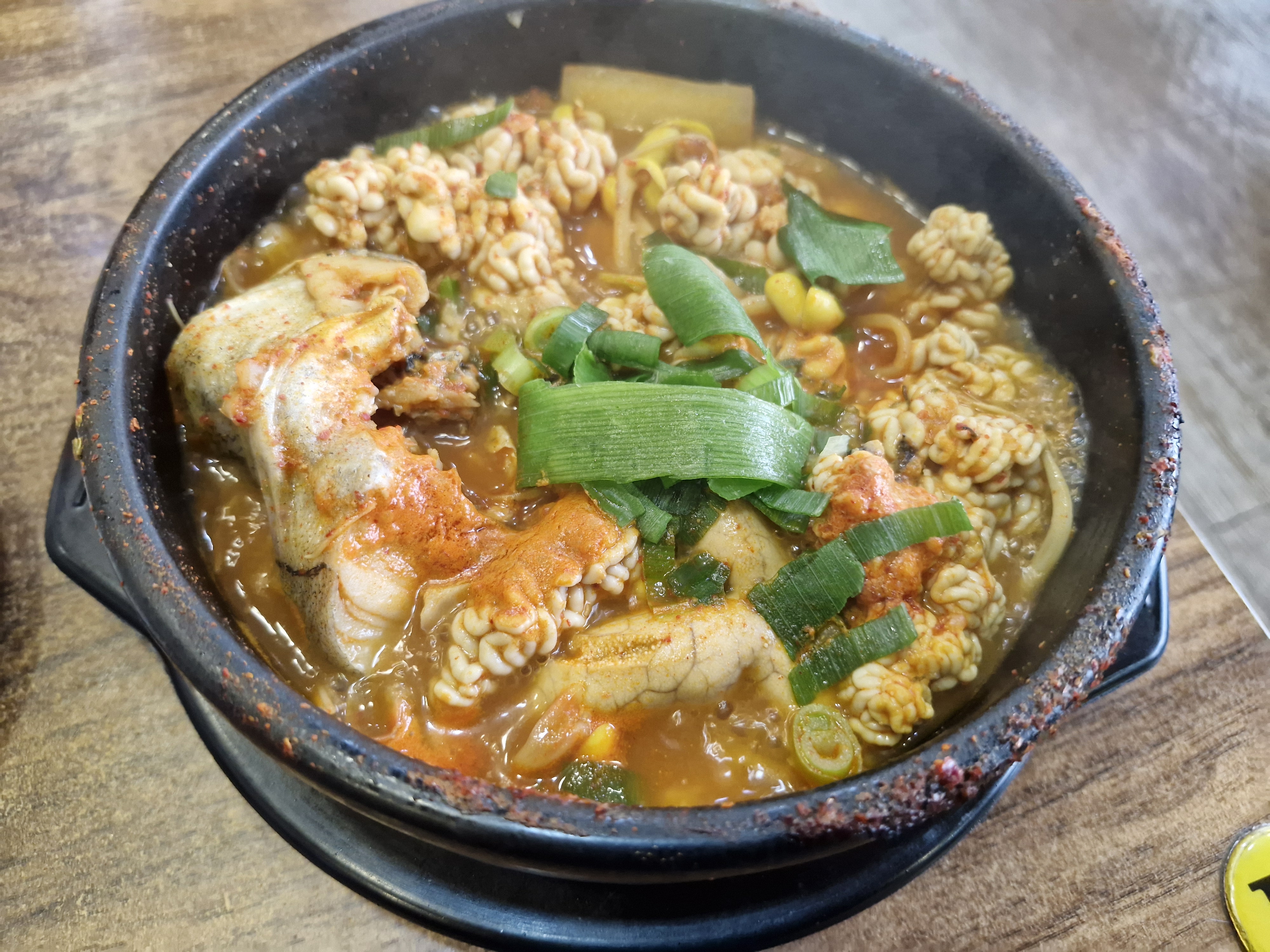 동태 + 알 + 고니의 조합인데 내용물이 너무 많아 국물이 별로 없는 게 흠일 정도로 푸짐합니다.