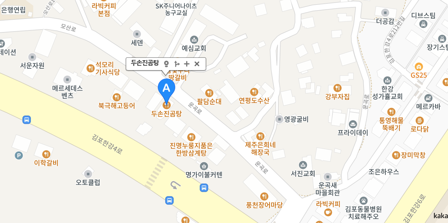김포 두손진곰탕은 주소는 김포시 장기동 운곡사거리 인근에 자리하고 있습니다.