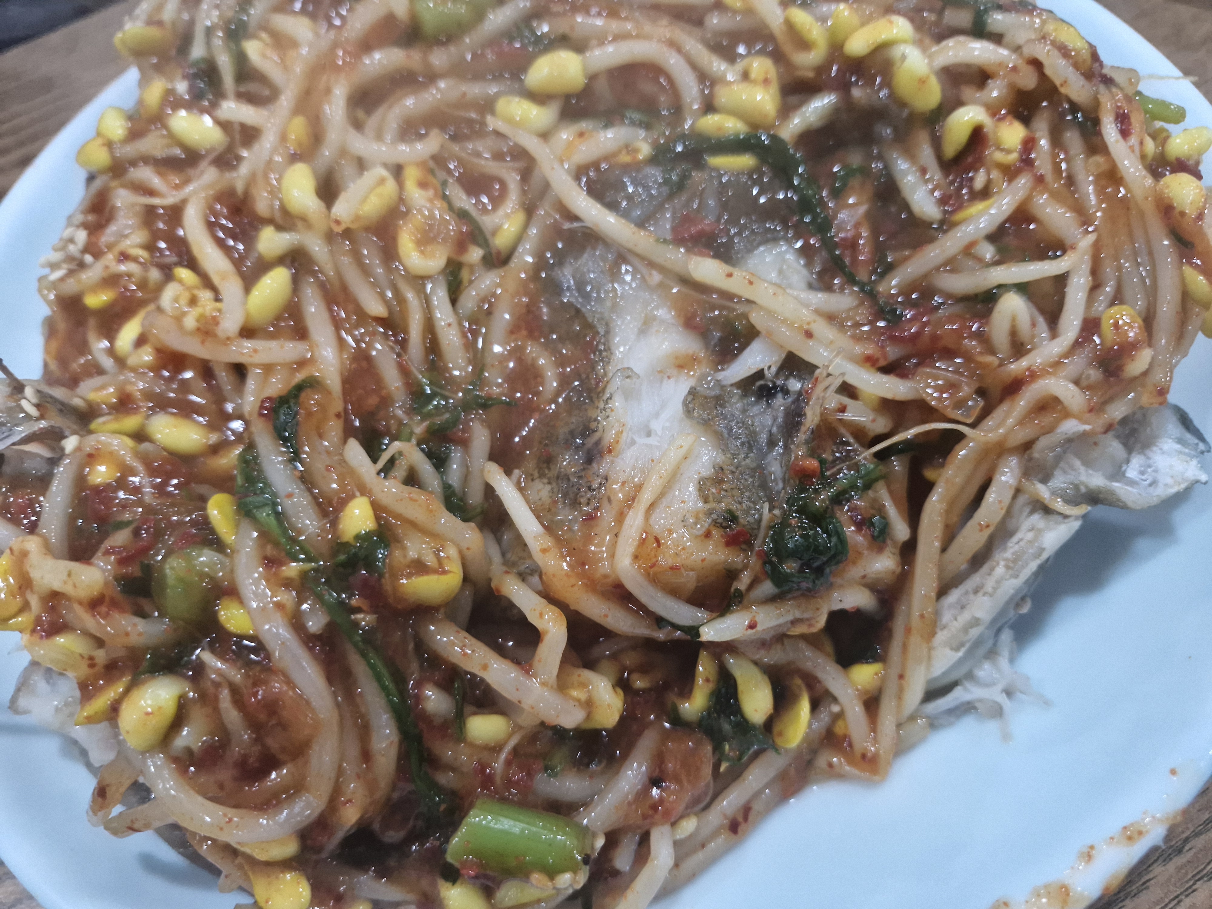 모양은 아귀찜과 거의 같고 내용물만 아귀에서 대구뽈로 바뀌었다고 생각하면 됩니다.