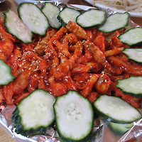 정확하지는 않지만 고추장 양념에 무쳐 나온것 같은데 소주를 부르는군요.