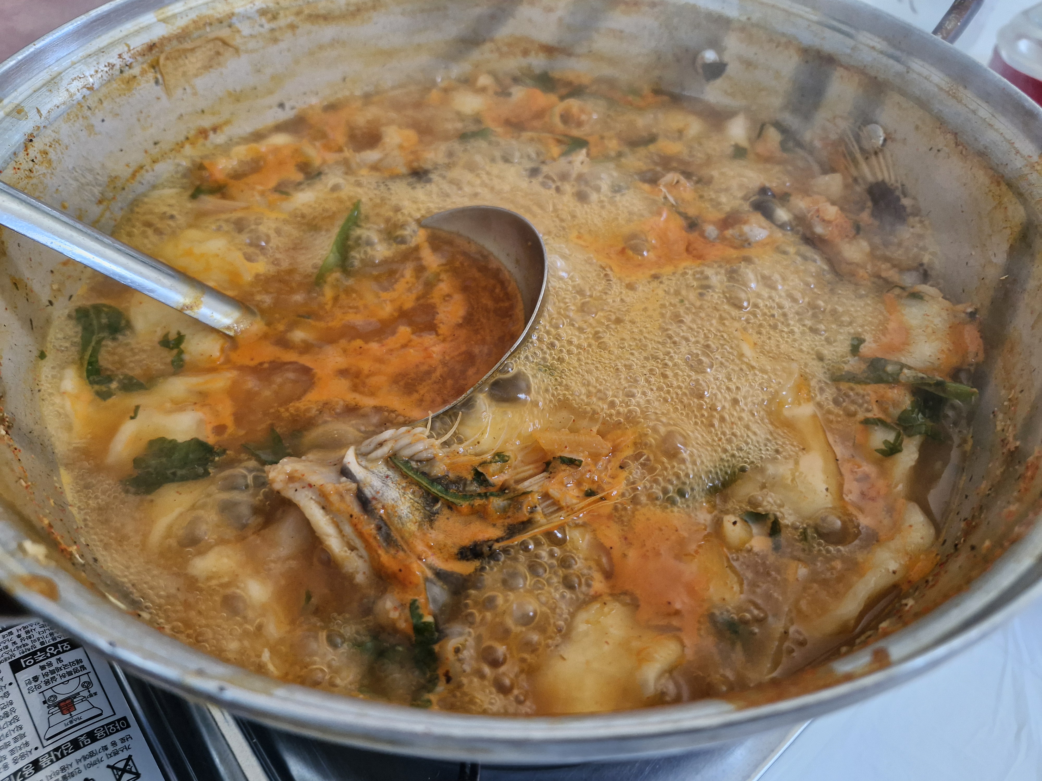 수제비가 처음부터 들어가 있는데도 국물이 진하면서도 텁텁하지 않고 감칠맛과 개운한 맛이 일품인데
