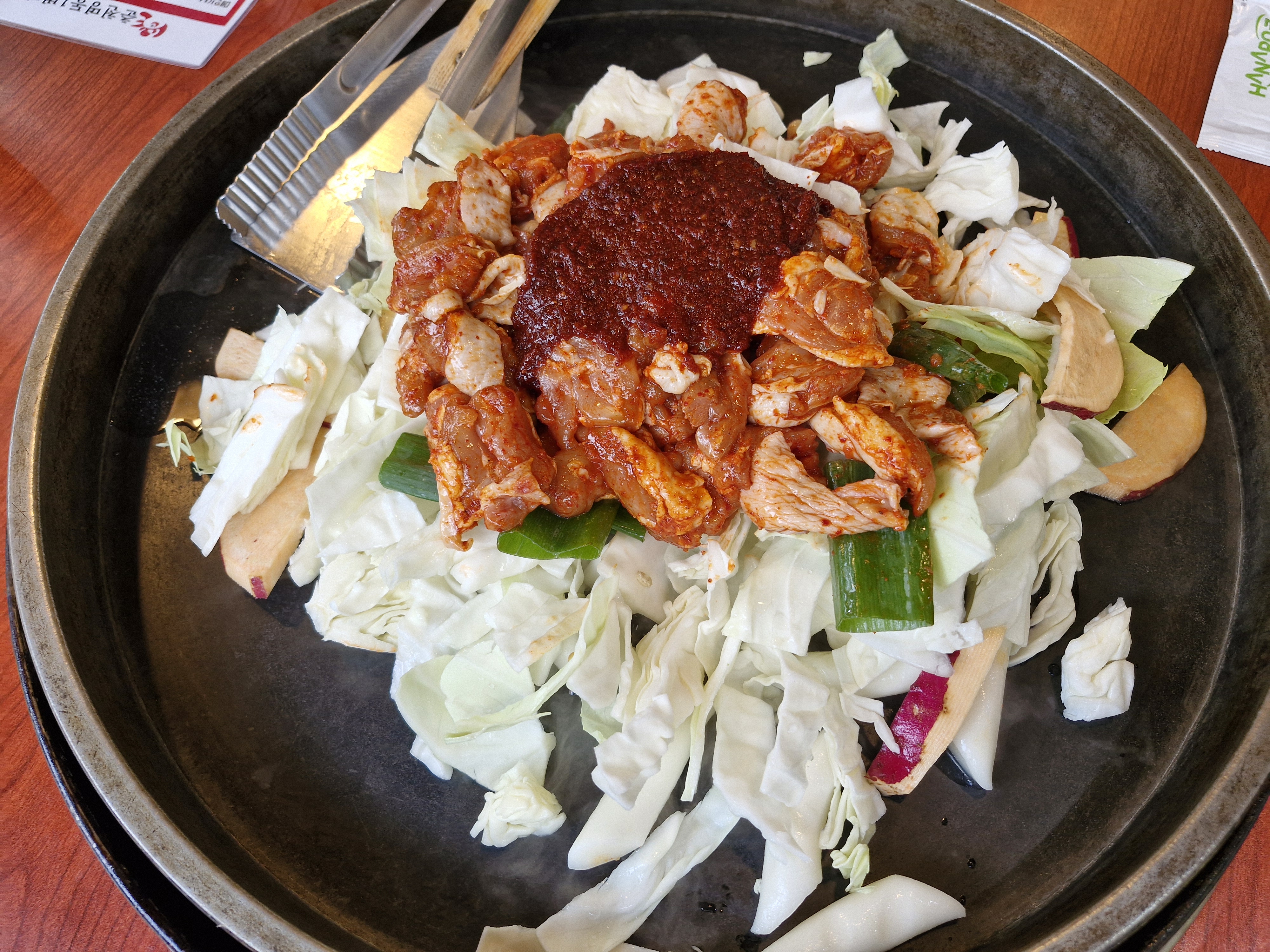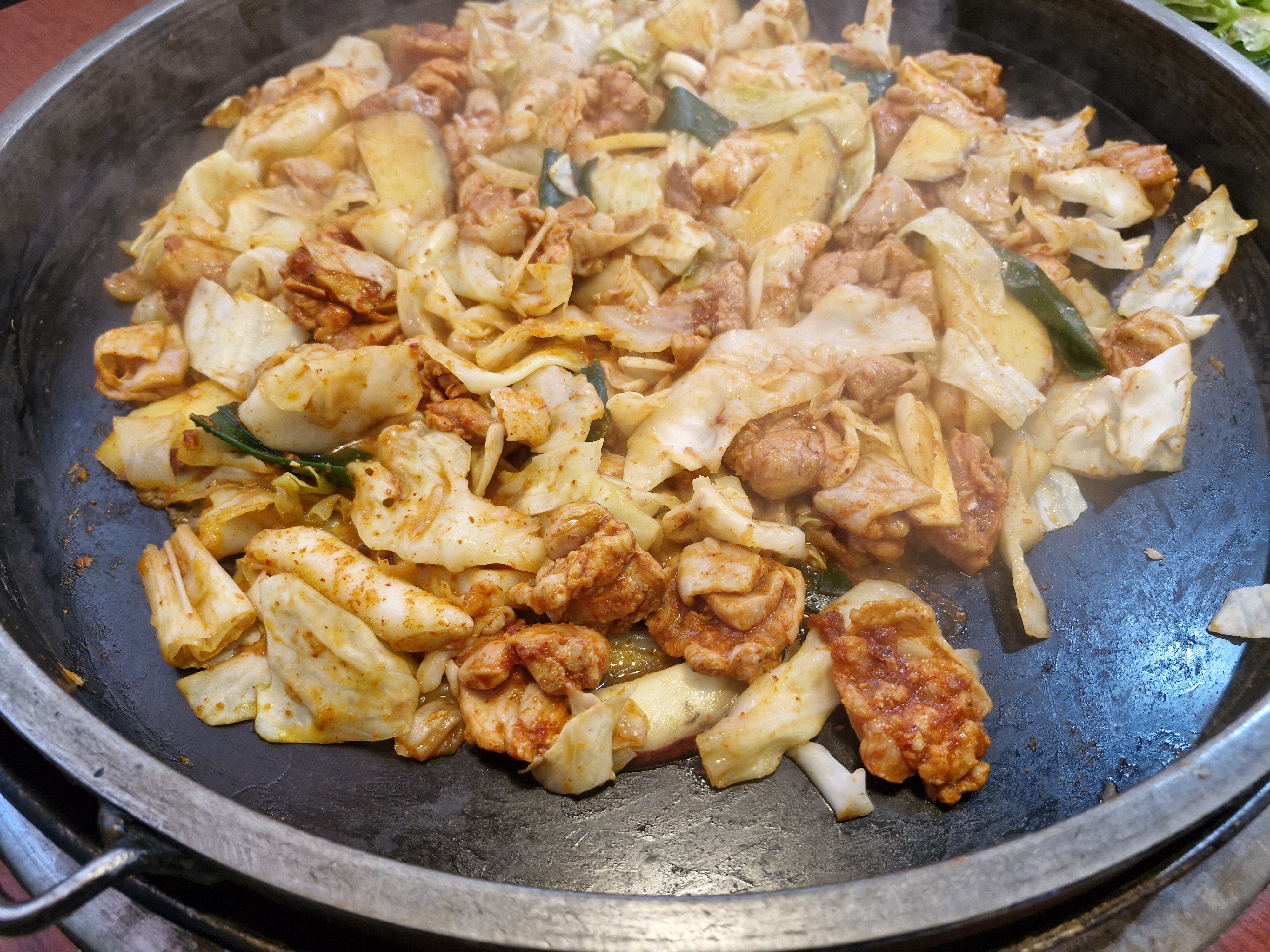 좋아하지 않았었는데 정말로 오래간만에 철판에서 구운 맛있는 닭갈비를 먹었습니다.