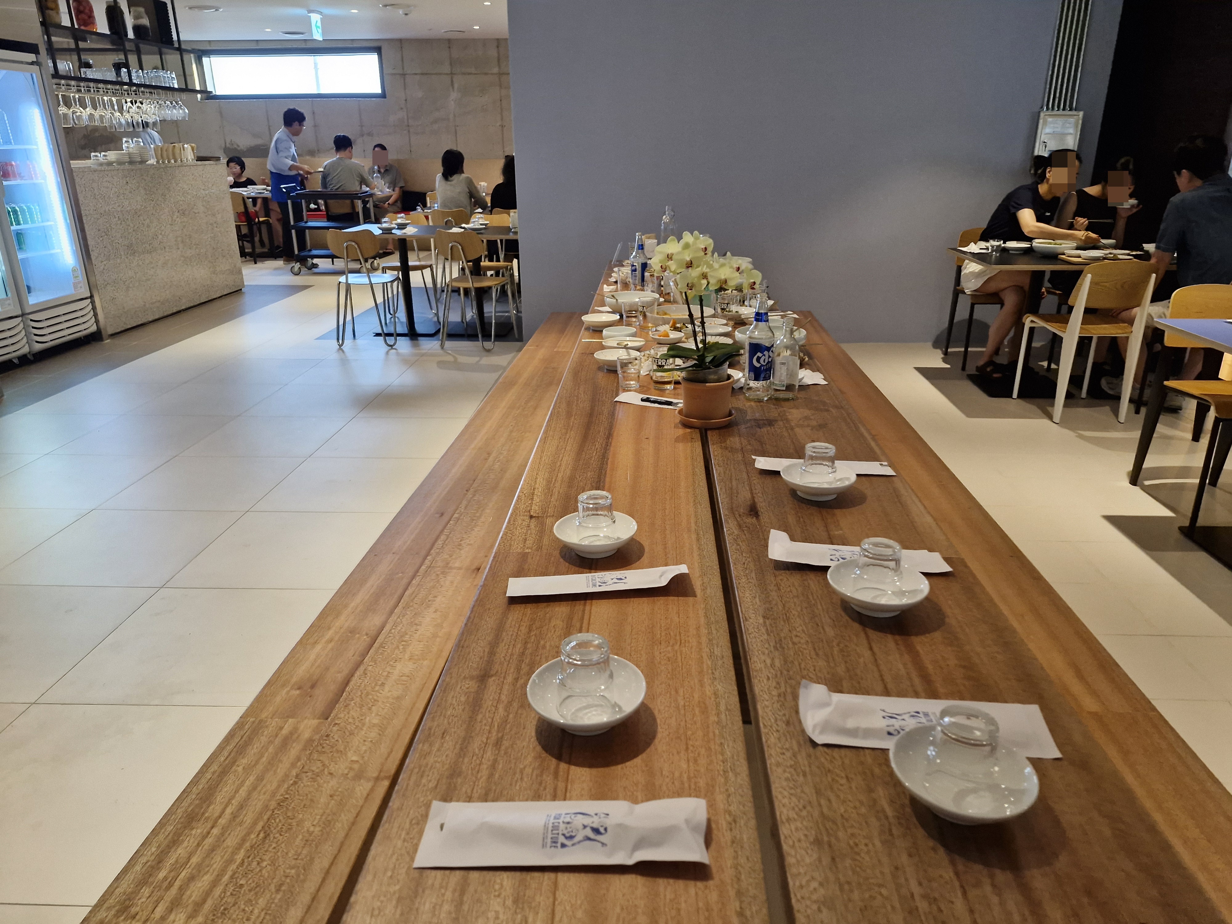 별로 문제 될 일은 아니지만 명색이 파인 다이닝인데 의자도 대여섯 명씩 앉는 긴 의자이고 어째 조금 그러네요.