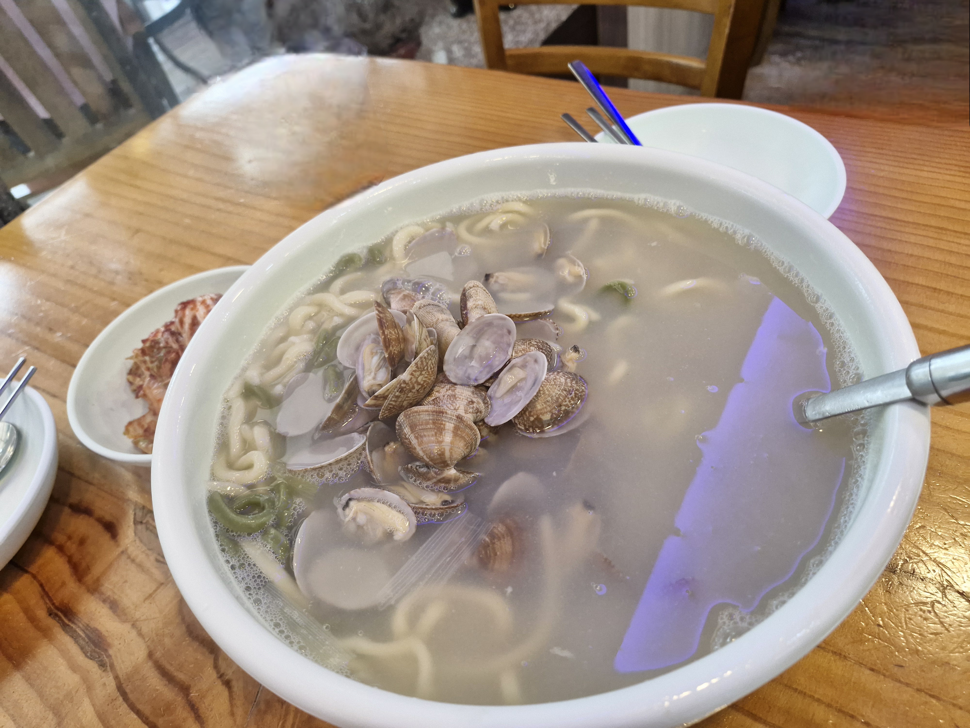바지락 칼국수가 나왔습니다.