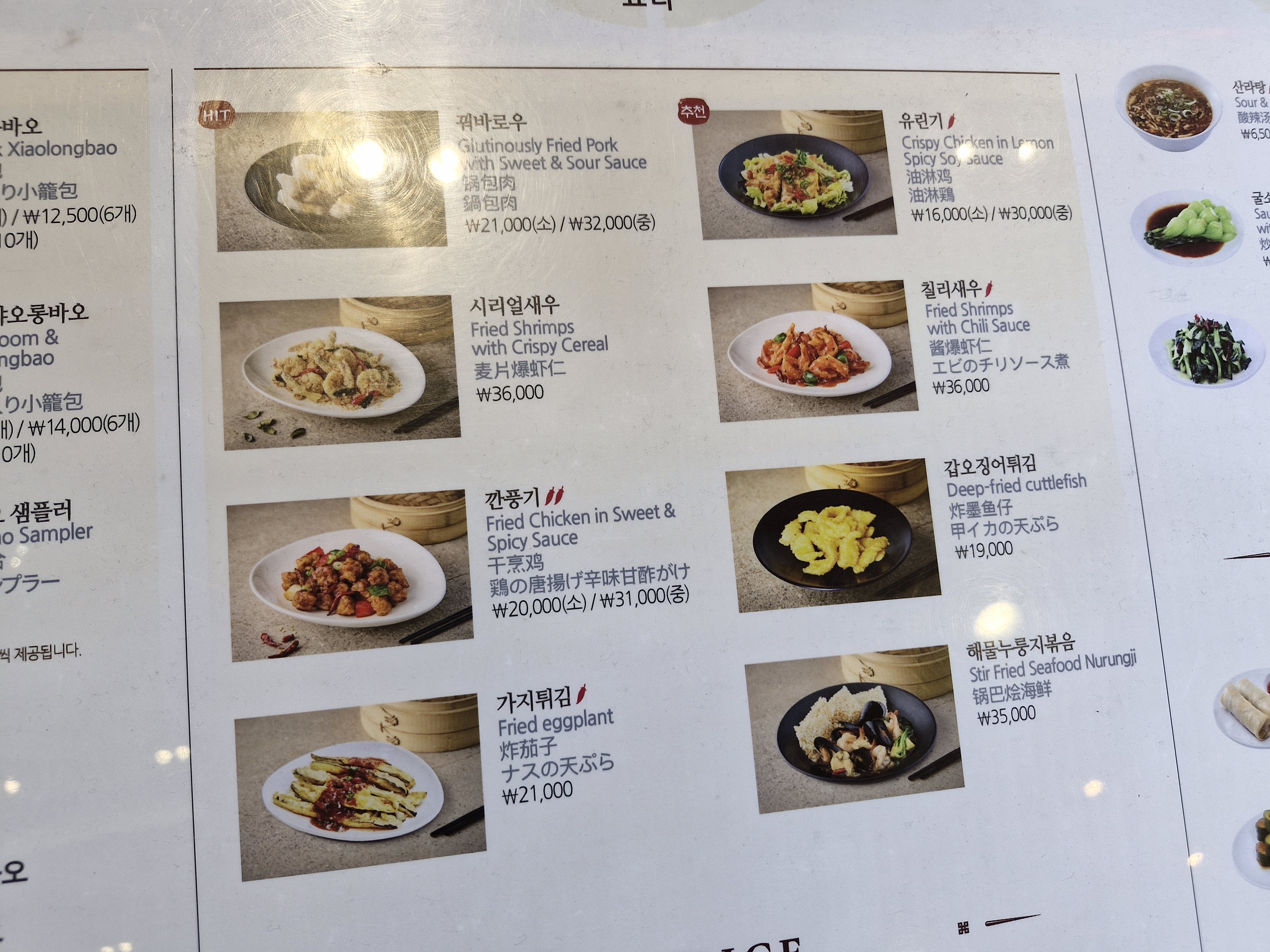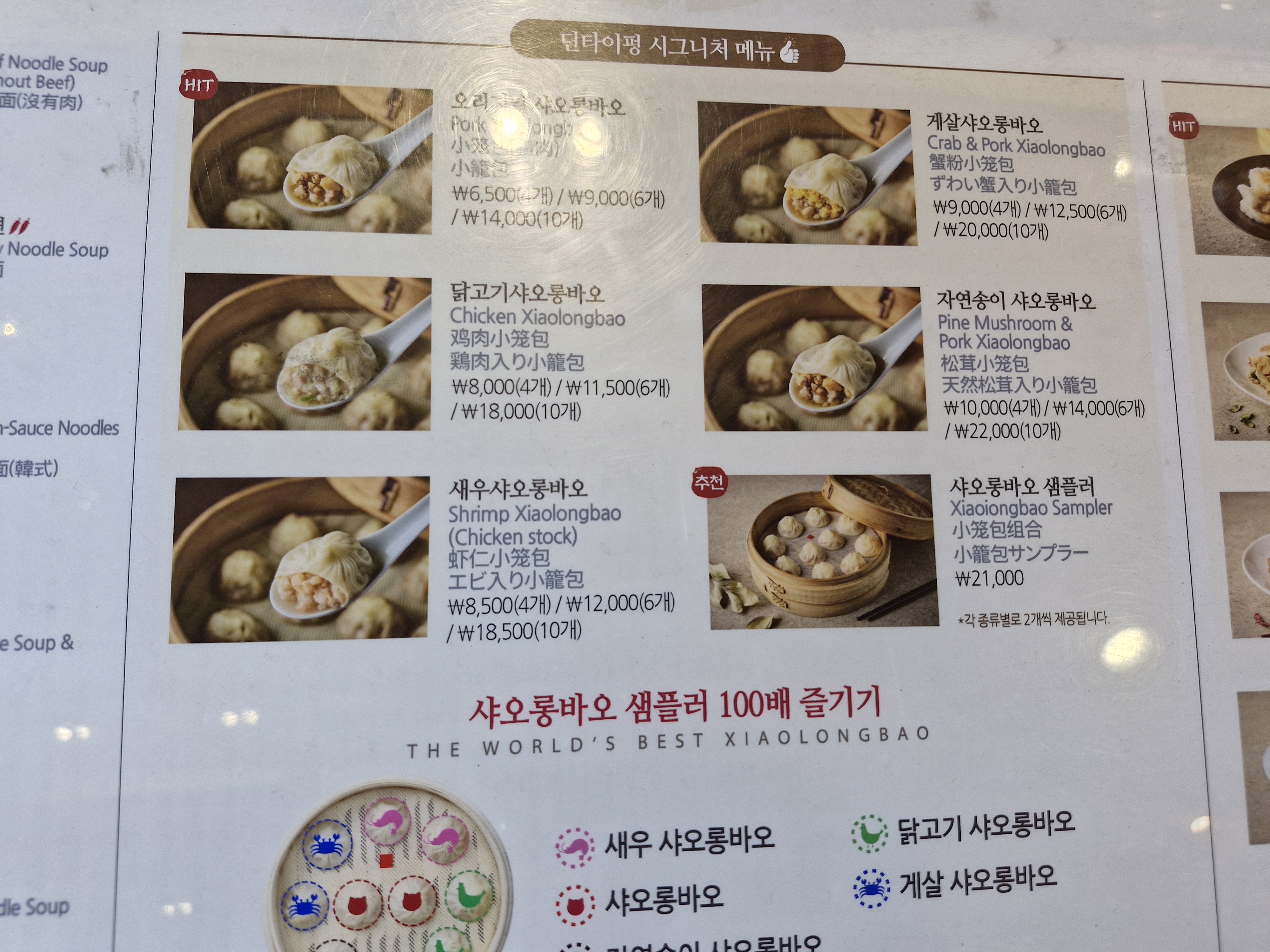 한국 딘타이펑은 샤오롱 바오나 딤섬, 우육면 같은 메뉴들 이외에 한국식 중국요리 같은 메뉴들도 많습니다.
