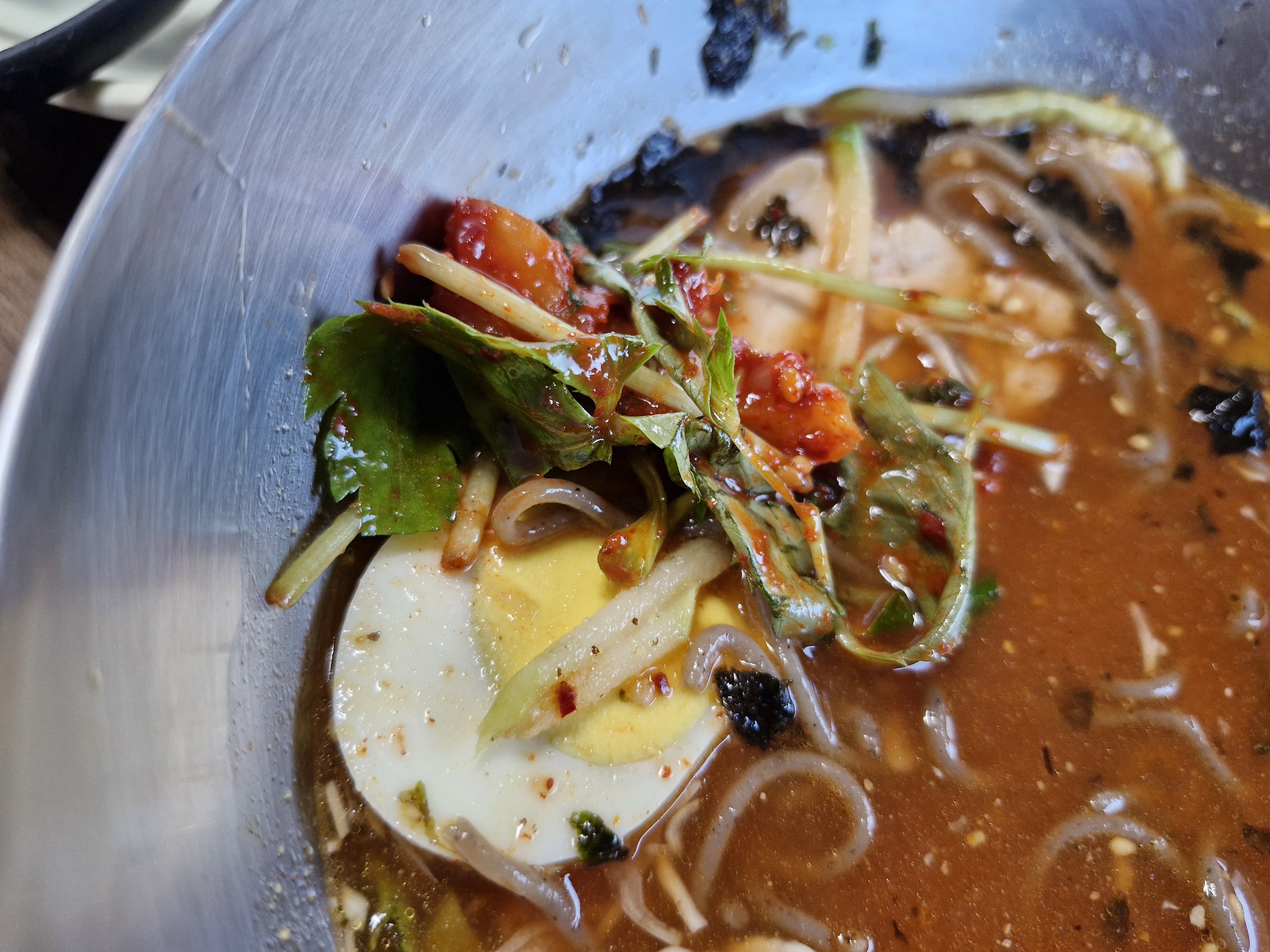 면을 어느 정도 먹고 육수를 넣어 먹으면 아주 좋습니다.